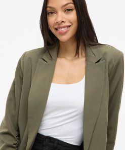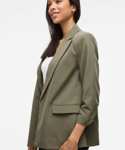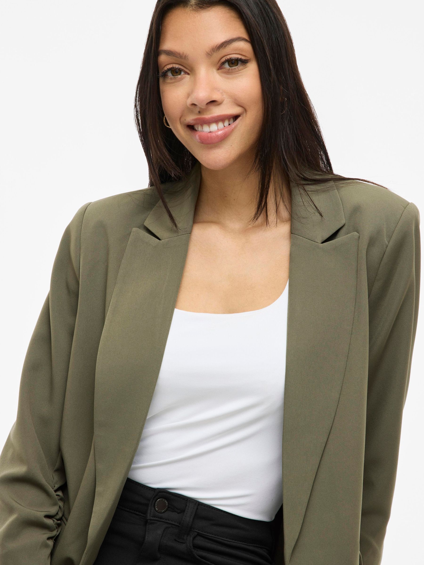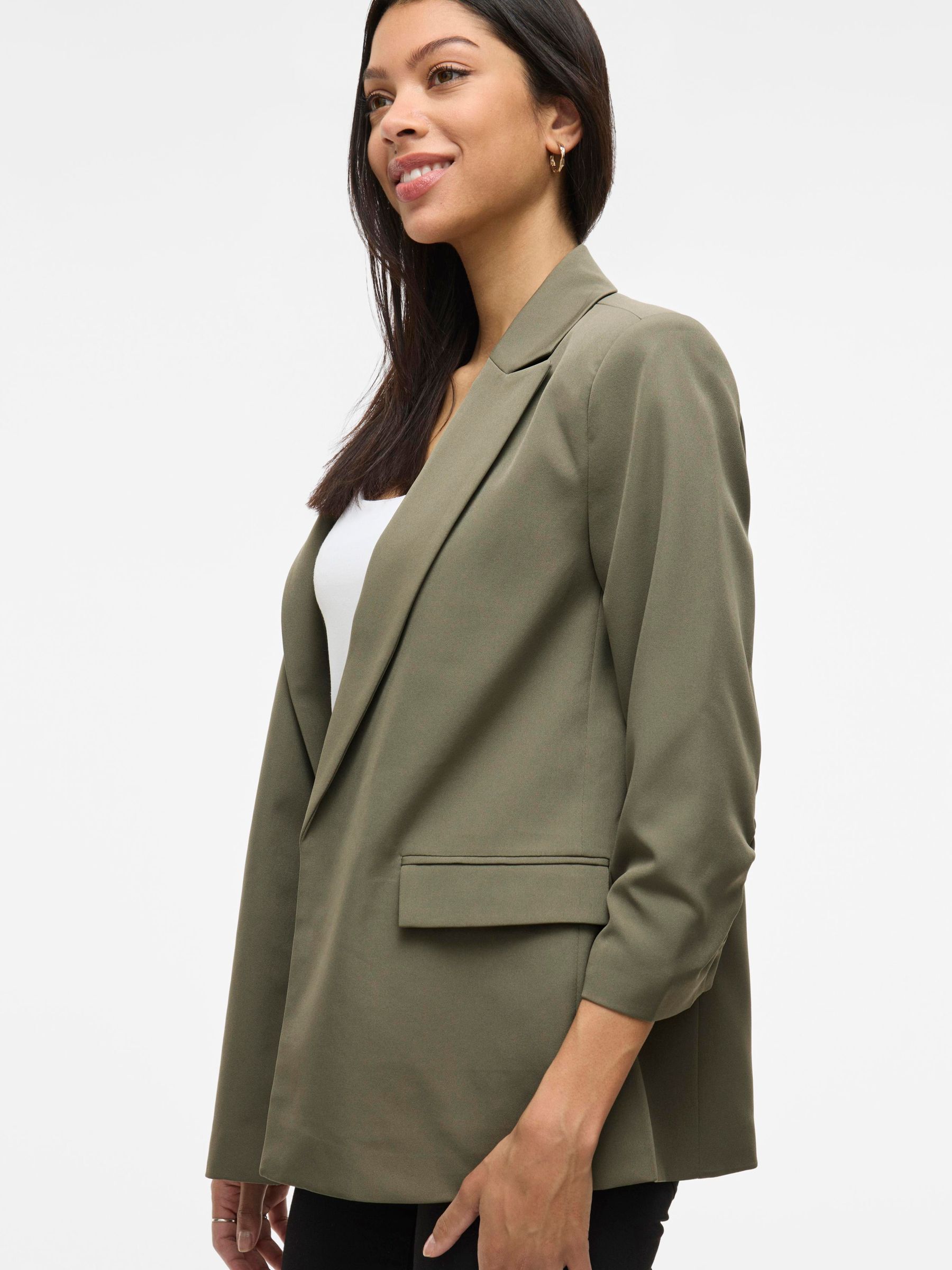 • 3/4-sleeved blazer• Wrinkled sleeves• Padded shoulders• Flap pockets• Notch lapels• Regular fit• Length: 71 cm in size 38• Sleeve length: 49 cm in size 38