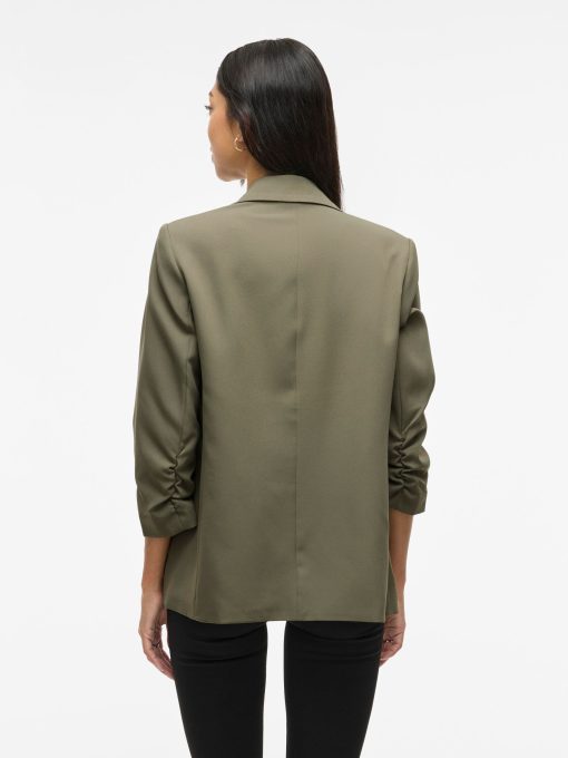 • 3/4-sleeved blazer• Wrinkled sleeves• Padded shoulders• Flap pockets• Notch lapels• Regular fit• Length: 71 cm in size 38• Sleeve length: 49 cm in size 38