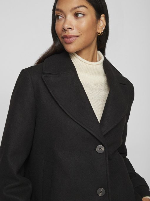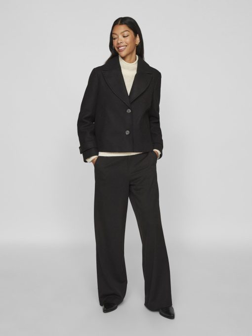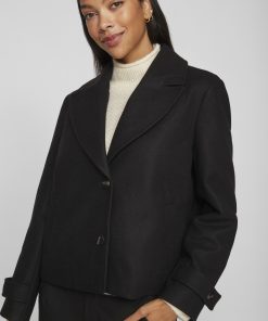 VILA Women’s Button Front V-neck Jacket | Black Beauty