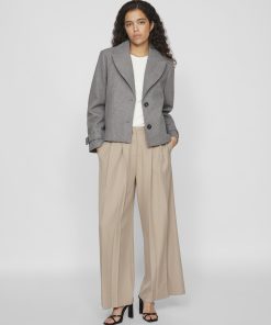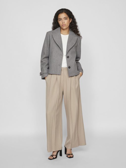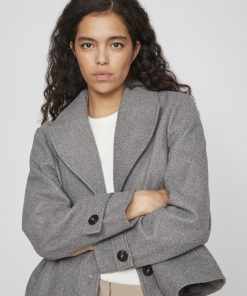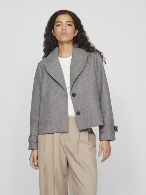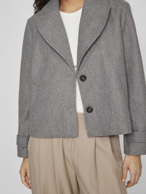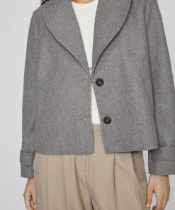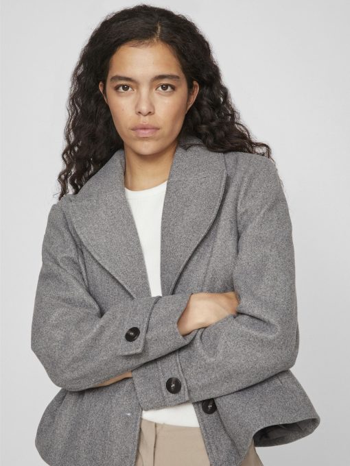 VILA Women’s Button Front V-neck Jacket | Medium Grey Melange