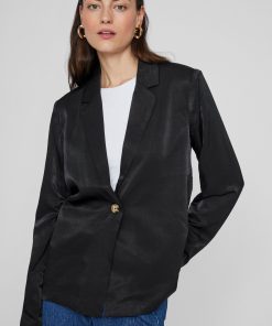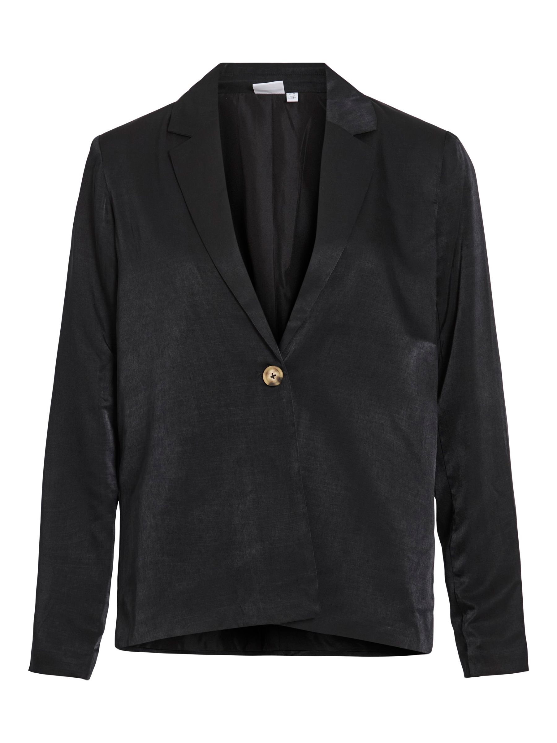 • Classic, single-breasted blazer• Padded shoulders• Shiny fabric• Regular fit• Length: 68 cm in size 38• Sleeve length: 65 cm in size 38
