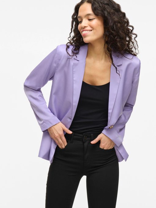 • Classic, single-breasted blazer• Padded shoulders• Shiny fabric• Regular fit• Length: 68 cm in size 38• Sleeve length: 65 cm in size 38
