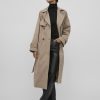• Long, belted trenchcoat• Double-breasted• Removable belt• Open pockets• Back slit detail• Belt detail at sleeves• Regular fit • Length: 125 cm in size 38• Sleeve length: 62 cm in size 38