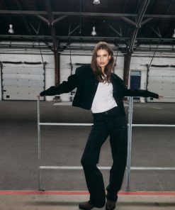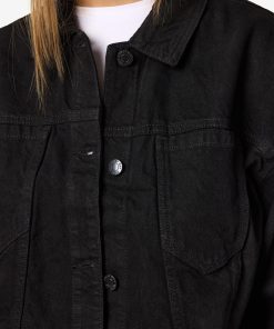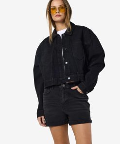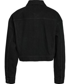 – Cropped denim jacket- Spread collar- Dropped shoulders- Long sleeves- Button-up front- Patch pockets at chest- Regular fit- Model is wearing size M