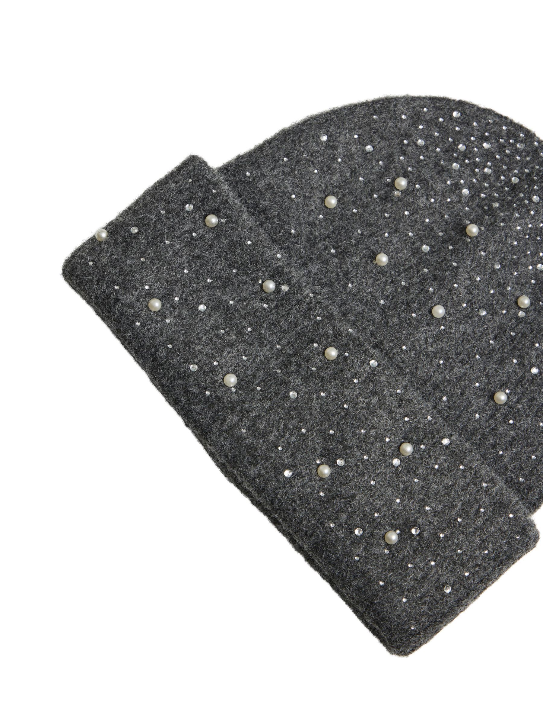 • Knitted beanie with pearl embellishments• Soft knit• One size