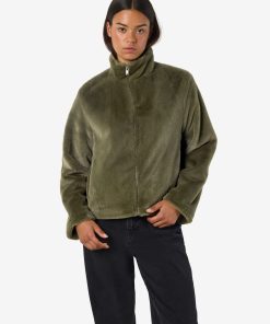 – Faux fur jacket- High neck- Dropped shoulders- Long sleeves- Zip-up front- Front pockets- Lined- Regular fit- Model is 179cm tall and wearing size M