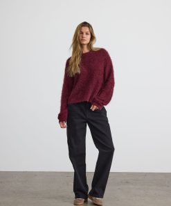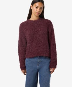 – Knitted pullover – Fluffy material – Round neckline – Long sleeved – Dropped shoulders – Relaxed fit- Model is 179cm tall and wearing size S