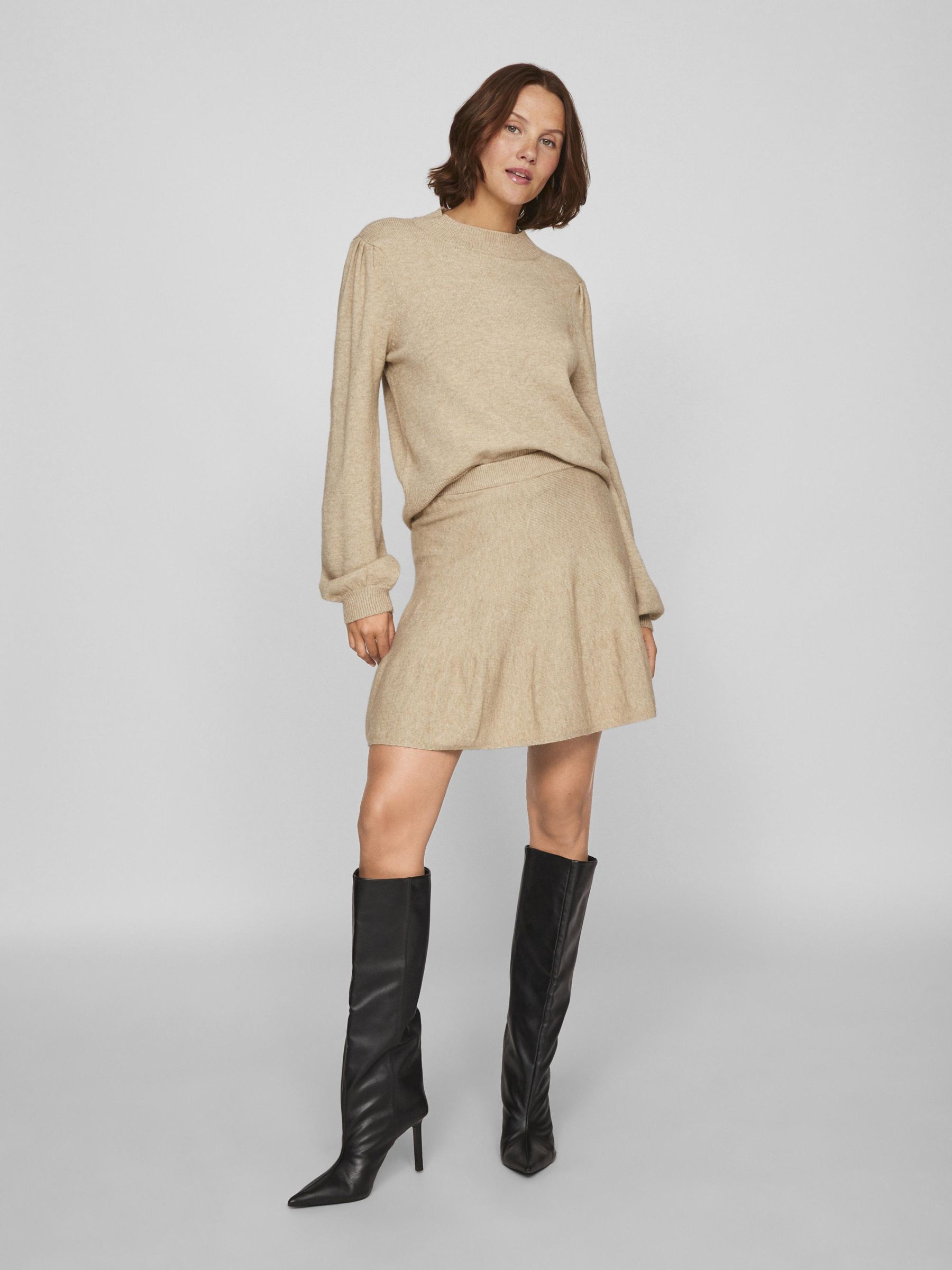 – Knitted jumper- High rib neck- Puff shoulders- Rid edges- Soft, stretchy knit- Regular fit- Length: 56 cm in size M- Sleeve length: 65 cm in size M- Our model is 180 cm tall and wears size M