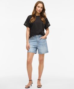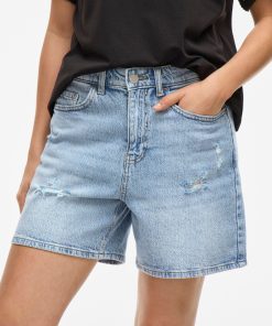 • High waist denim shorts• Zip and button fastening• Front and back pockets• Belt loops• Regular fit• Inseam: 14 cm in size 38• Frontrise: 29.5 cm in size 38