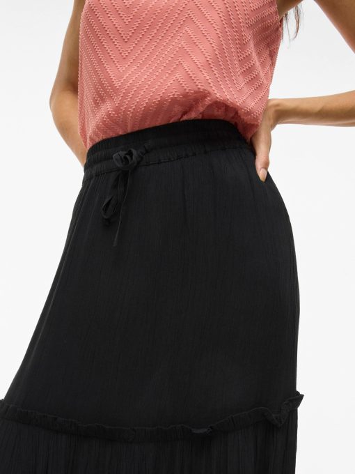 – High waist maxi skirt- Elastic waistband with drawstrings- Ruffle details- Textured fabric- Regular fit- Length: 100 cm in size 38- Our model is 178 cm tall and wears size 38