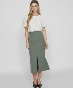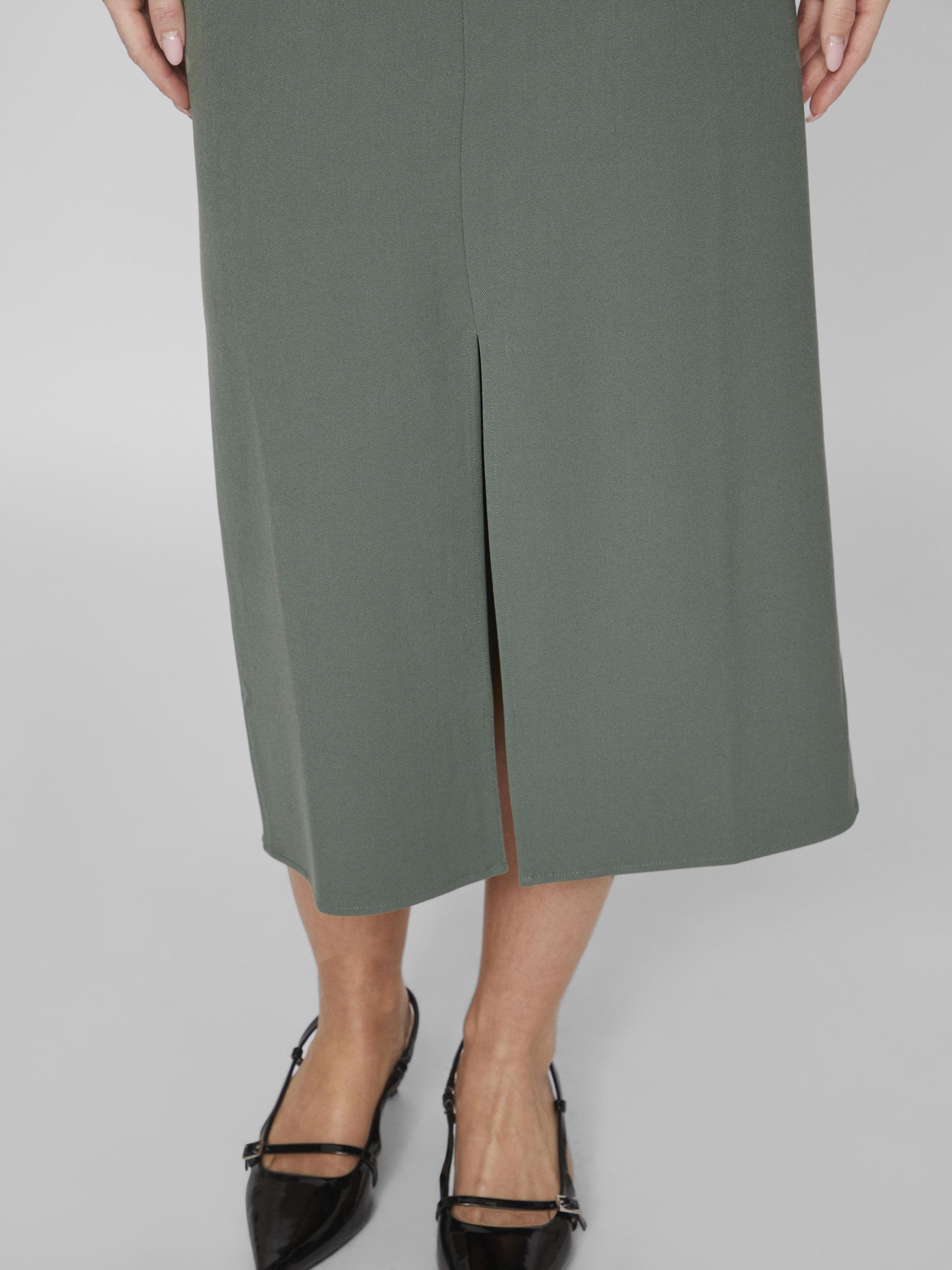 • High waist midi skirt• Front slit detail• Zip-up fly with hook and button fastening• Stretch-back waist• Regular fit • Length: 129 cm in size 38