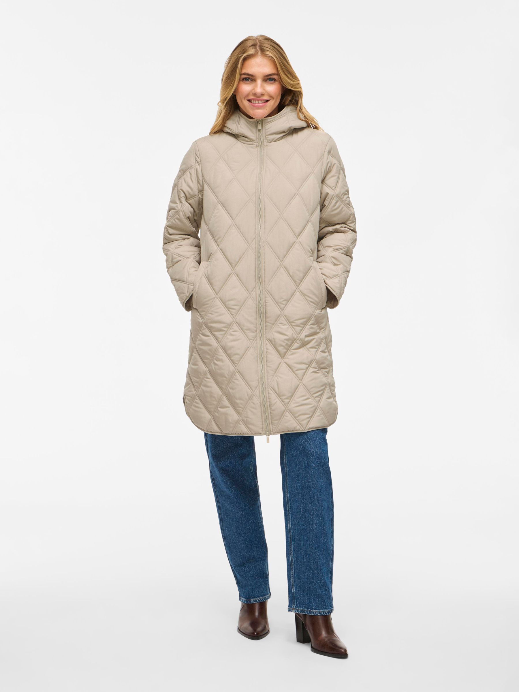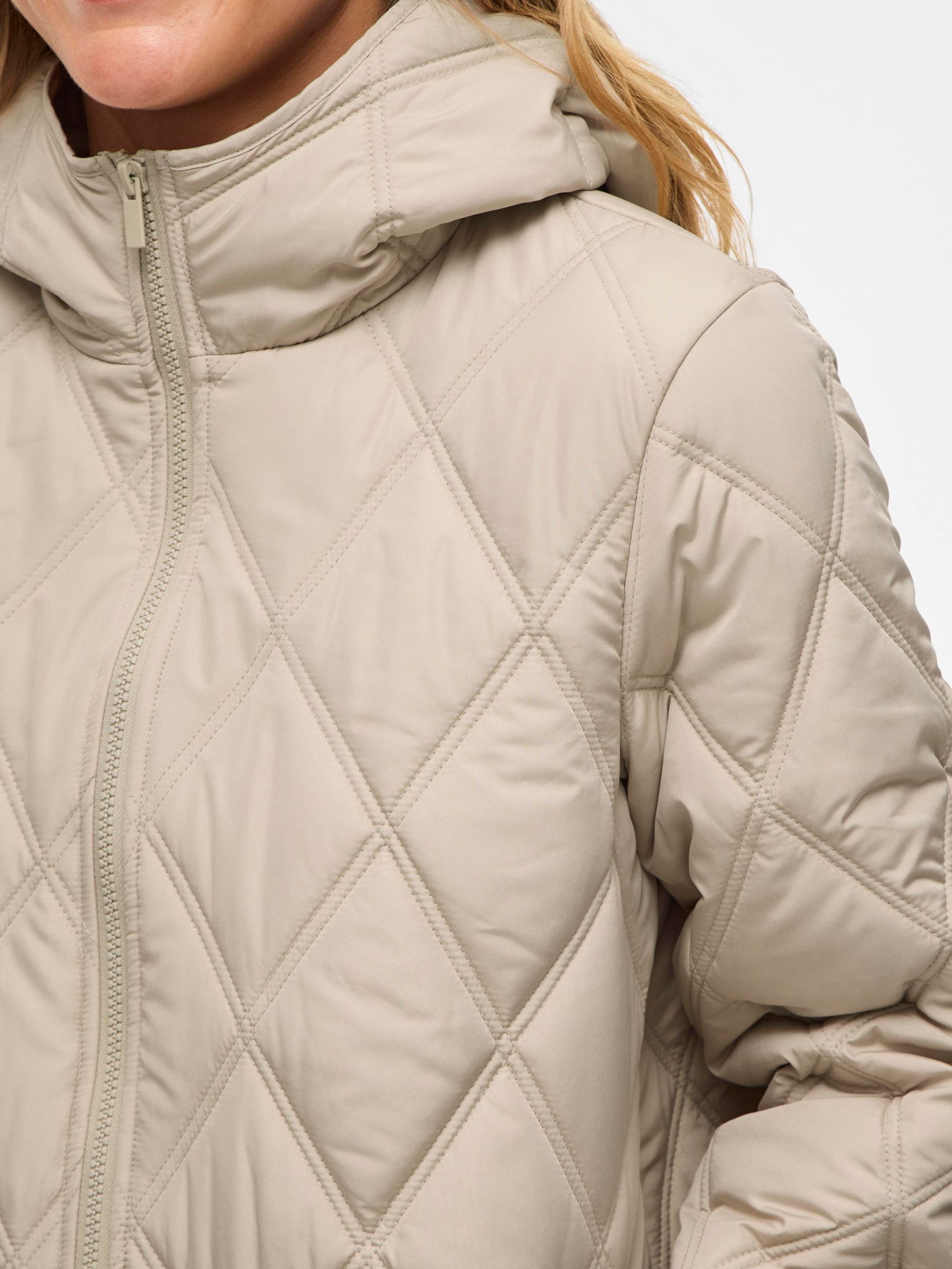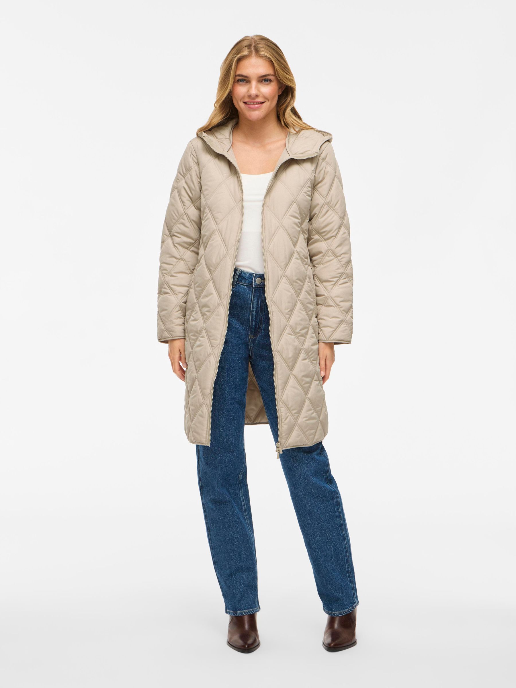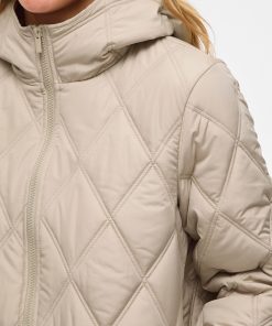 • Quilted coat with hood• Front zipper closure• Zipper open from top and bottom• Open front pockets• Regular fit• Length: 100 cm in size 38• Sleeve length: 62 cm in size 38
