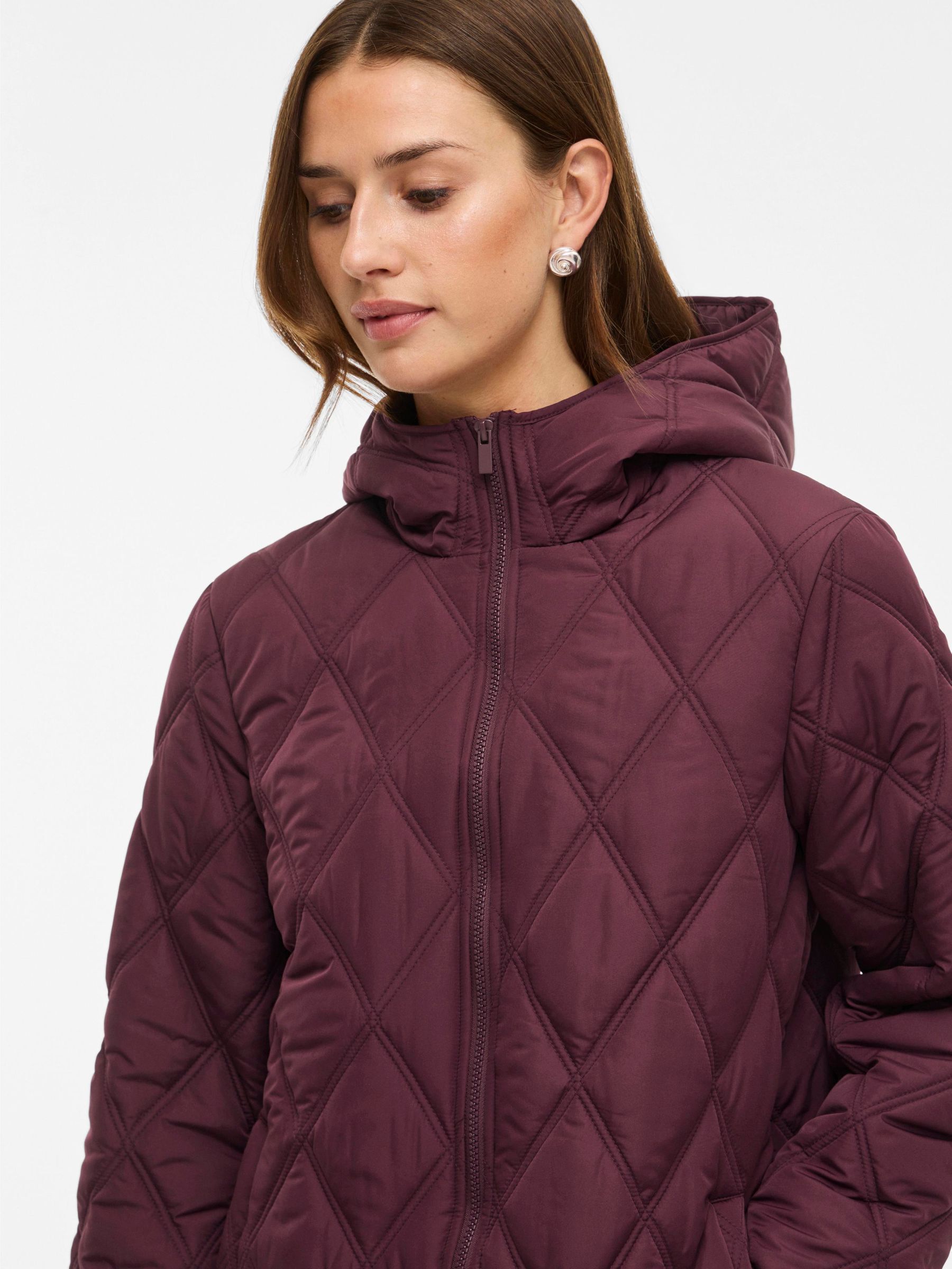 • Quilted coat with hood• Front zipper closure• Zipper open from top and bottom• Open front pockets• Regular fit• Length: 100 cm in size 38• Sleeve length: 62 cm in size 38