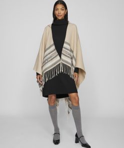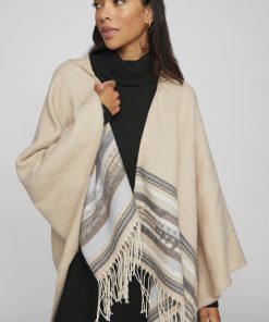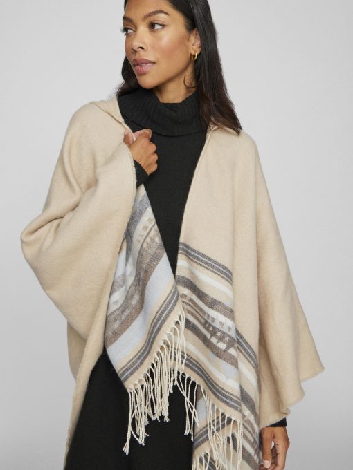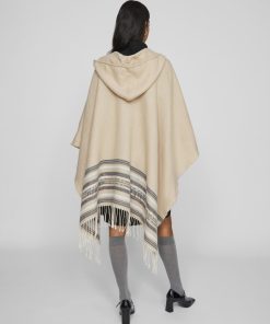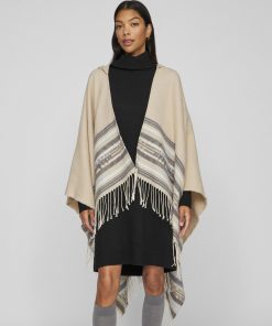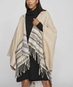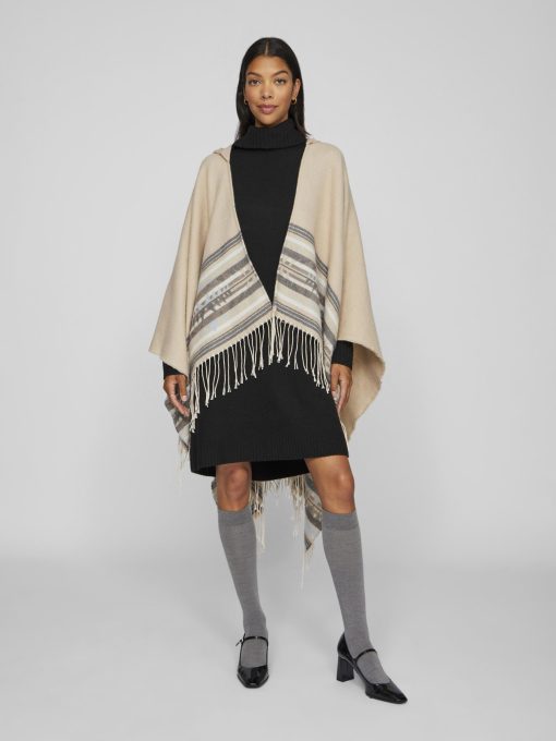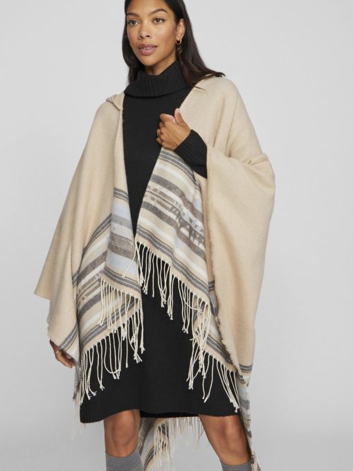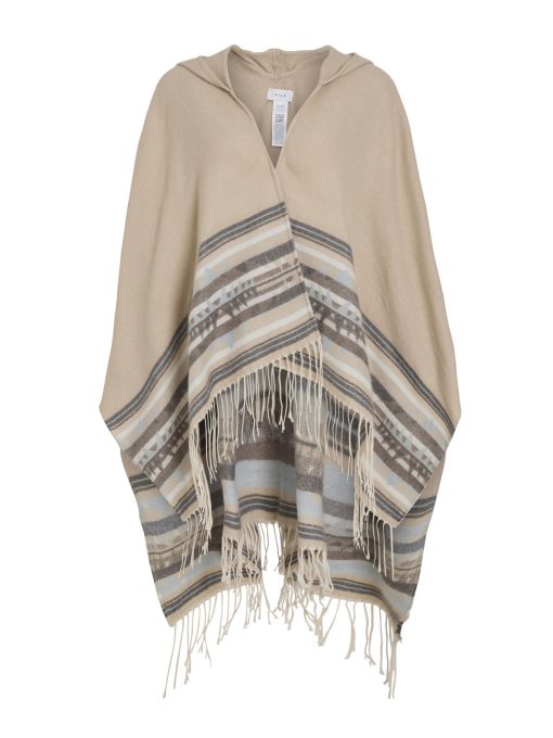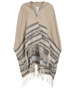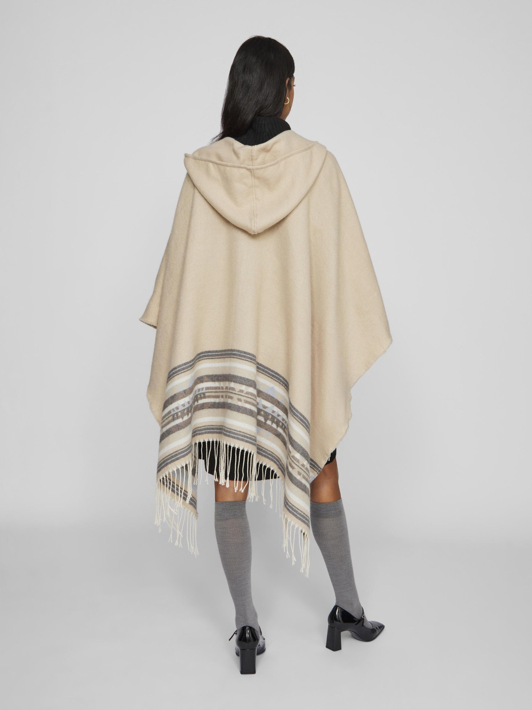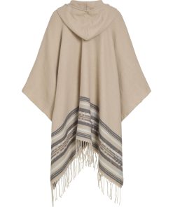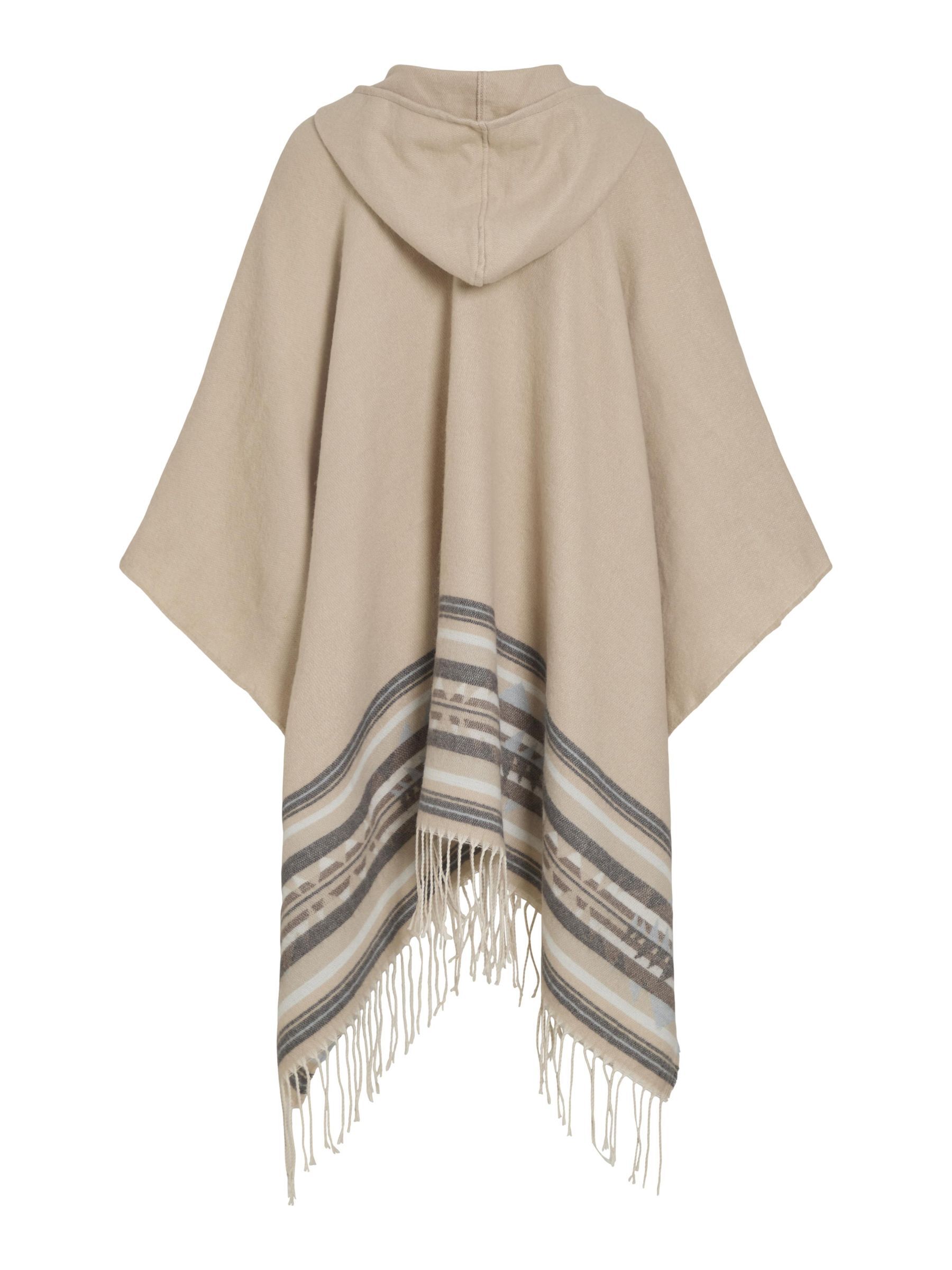 • Hooded poncho with fringe details• Open front• Patterned fabric