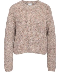– Knitted jumper- Melange design- Round neck- Dropped shoulders- Long sleeves- Ribbed trims- Regular fit- Model is wearing size M