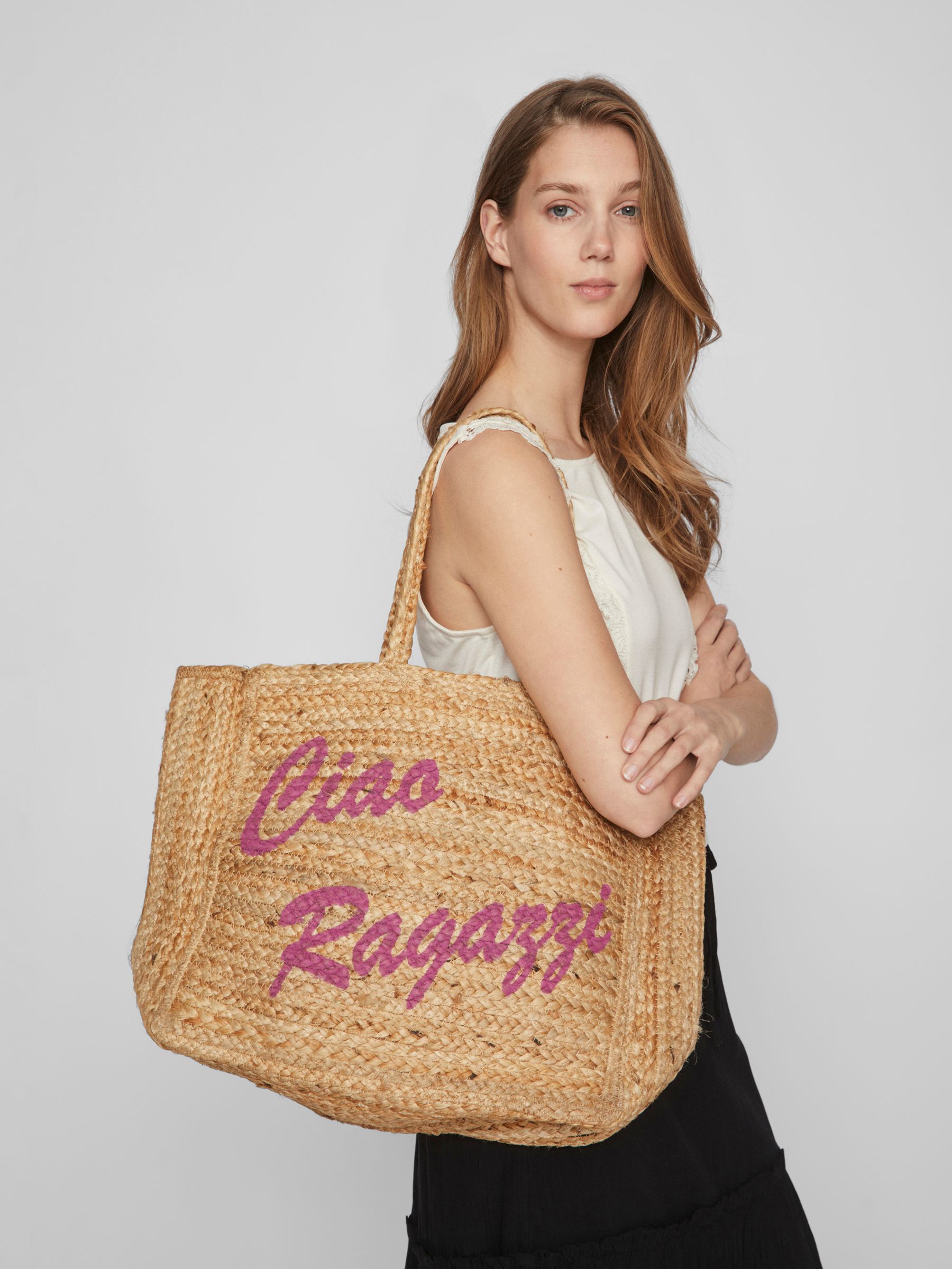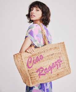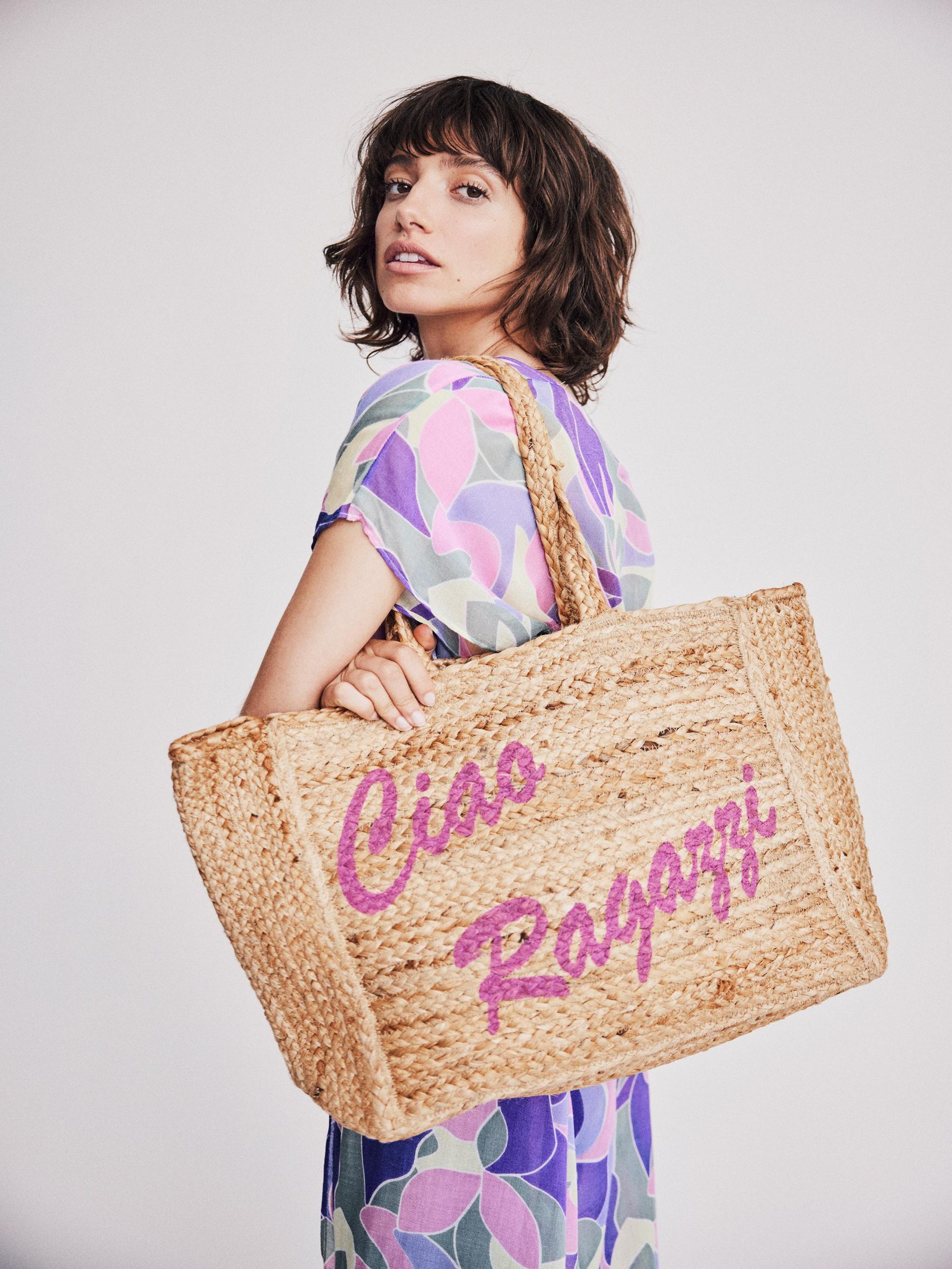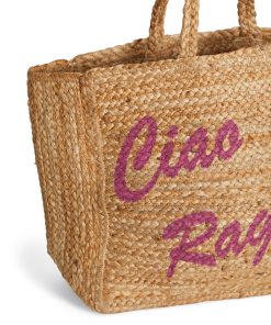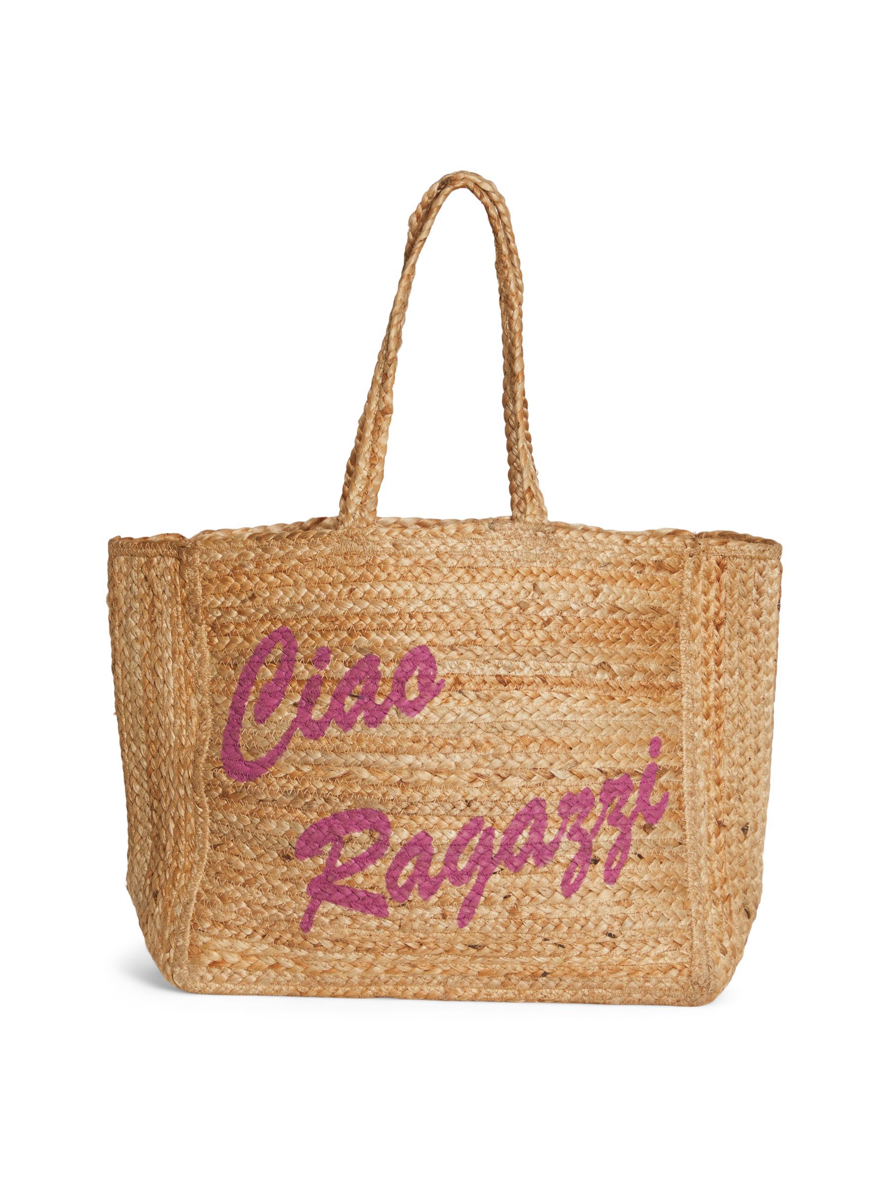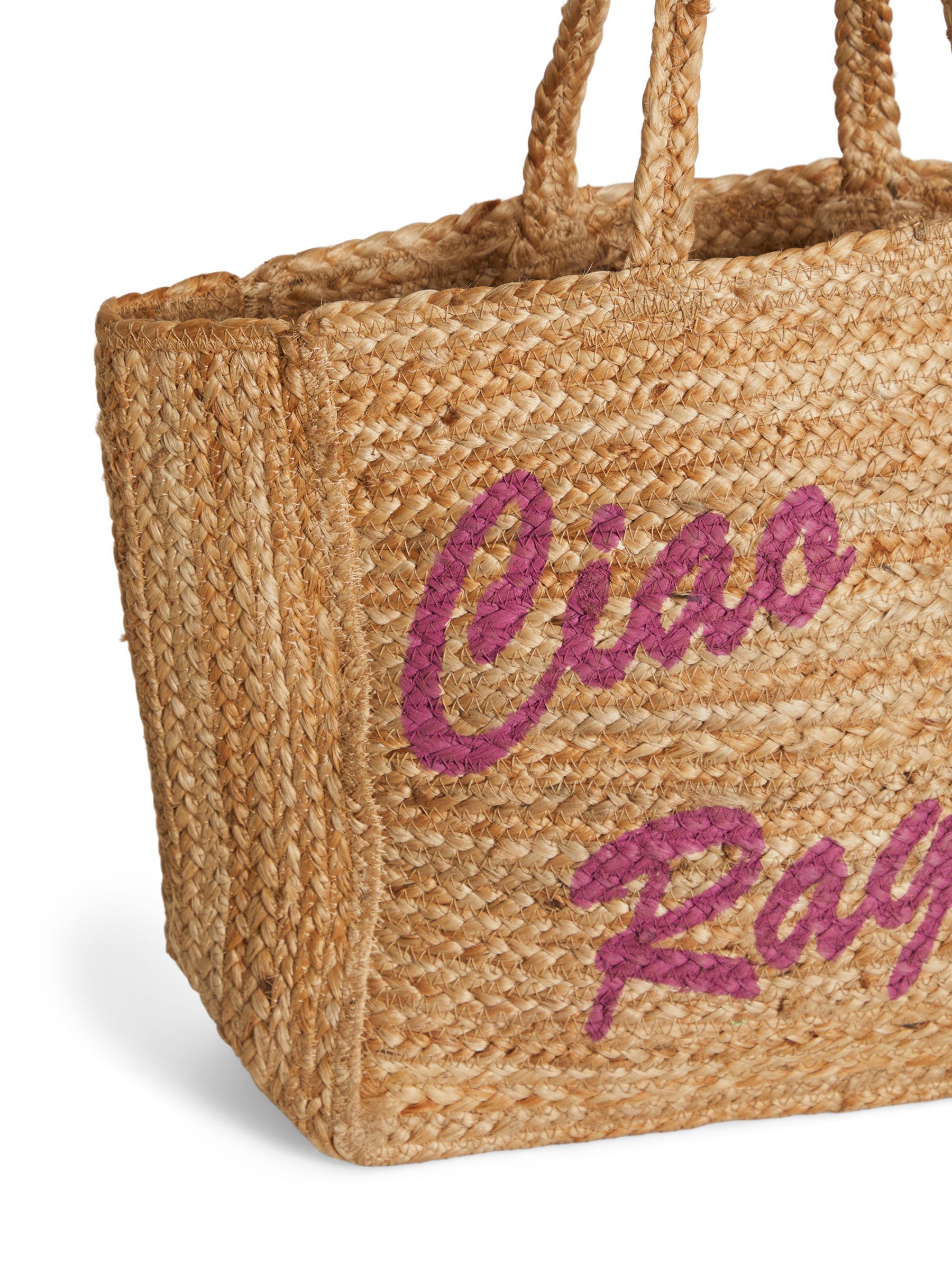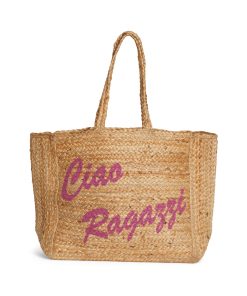 – Large jute beach bag- Gront print detail- One large compartment- Height: 36 cm- Depth: 15 cm- Width: 48 cm
