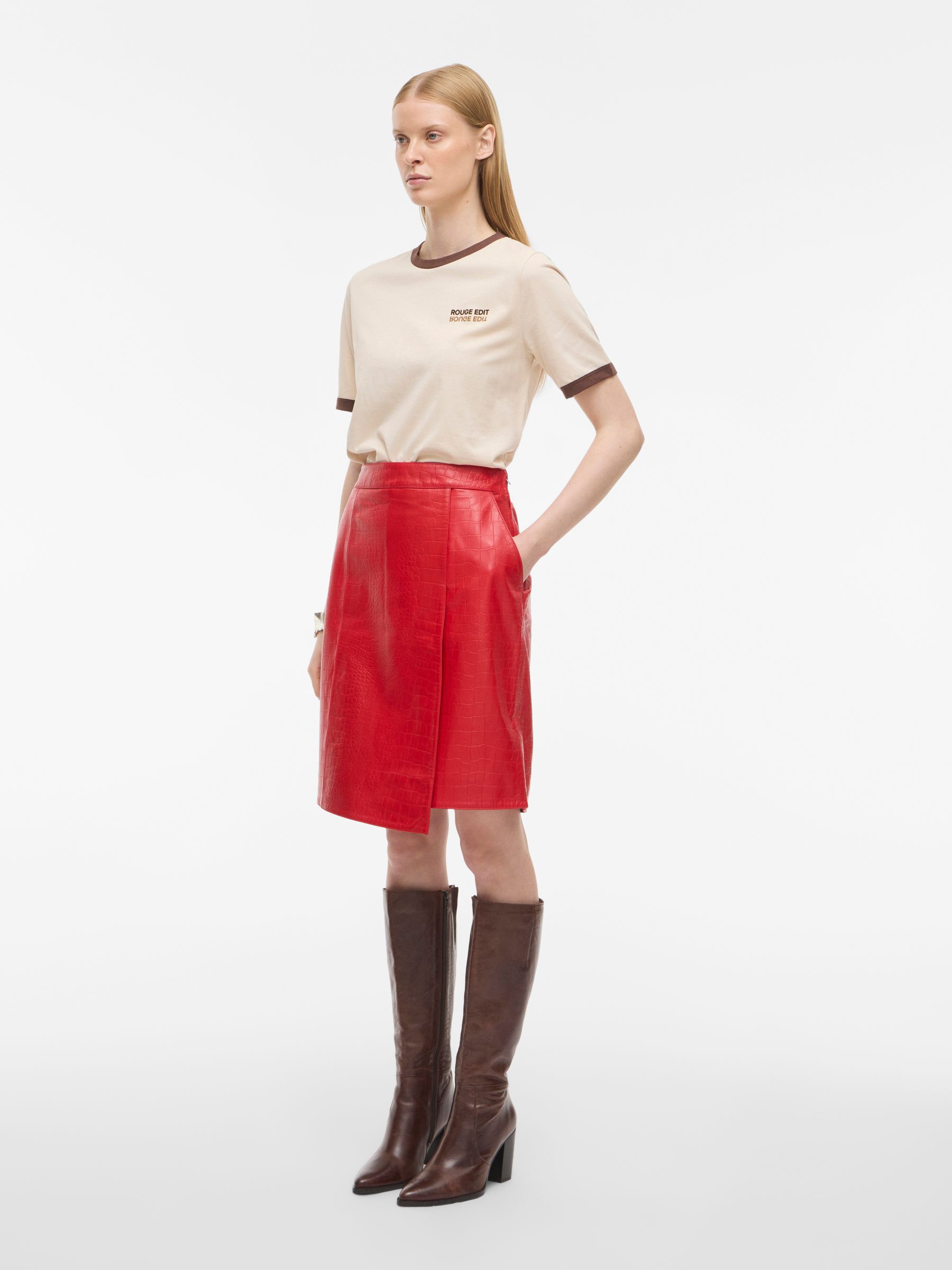 VILA Women’s Leather Mini Skirt | Chinese Red