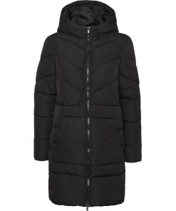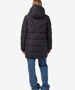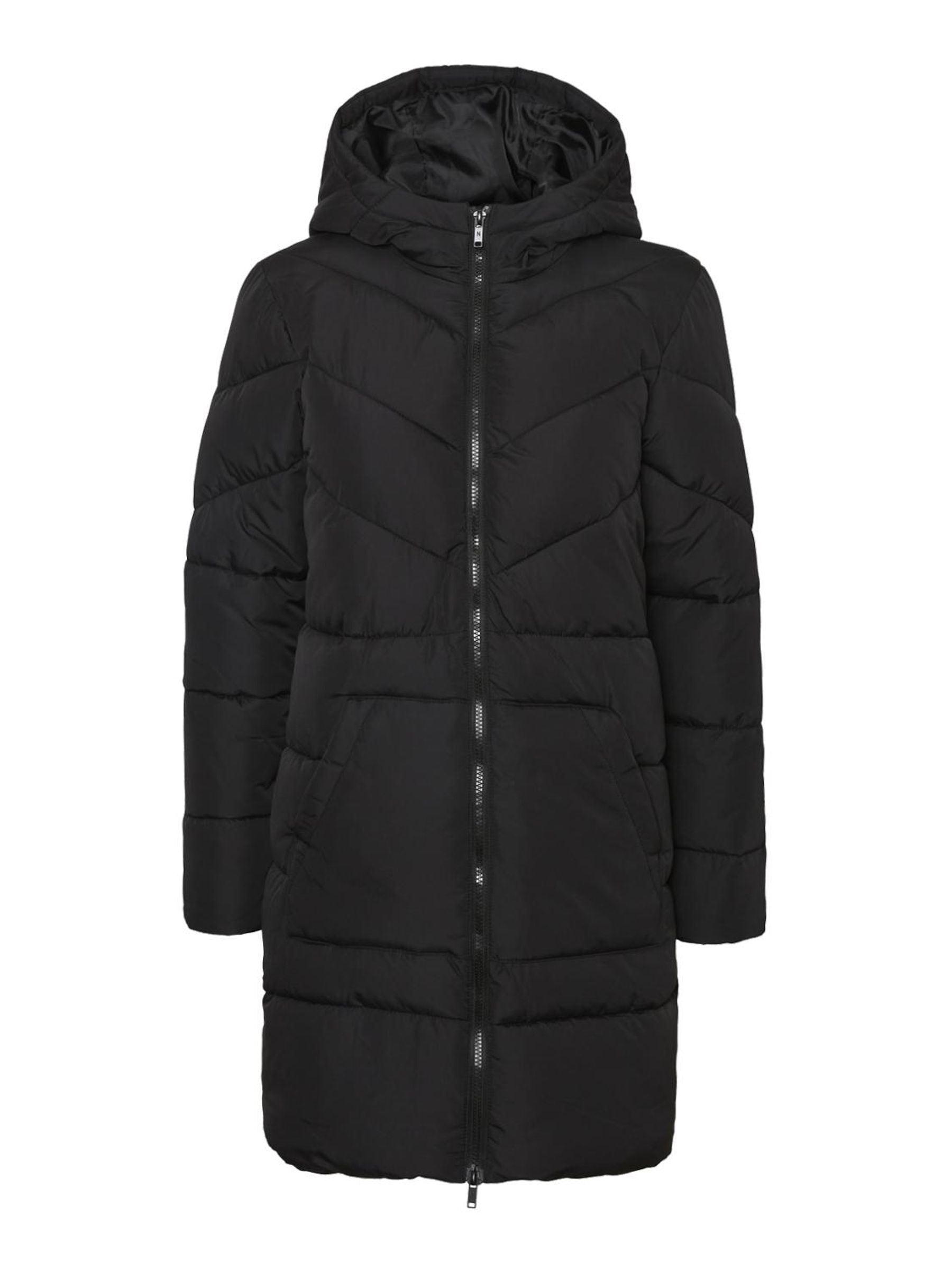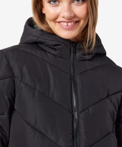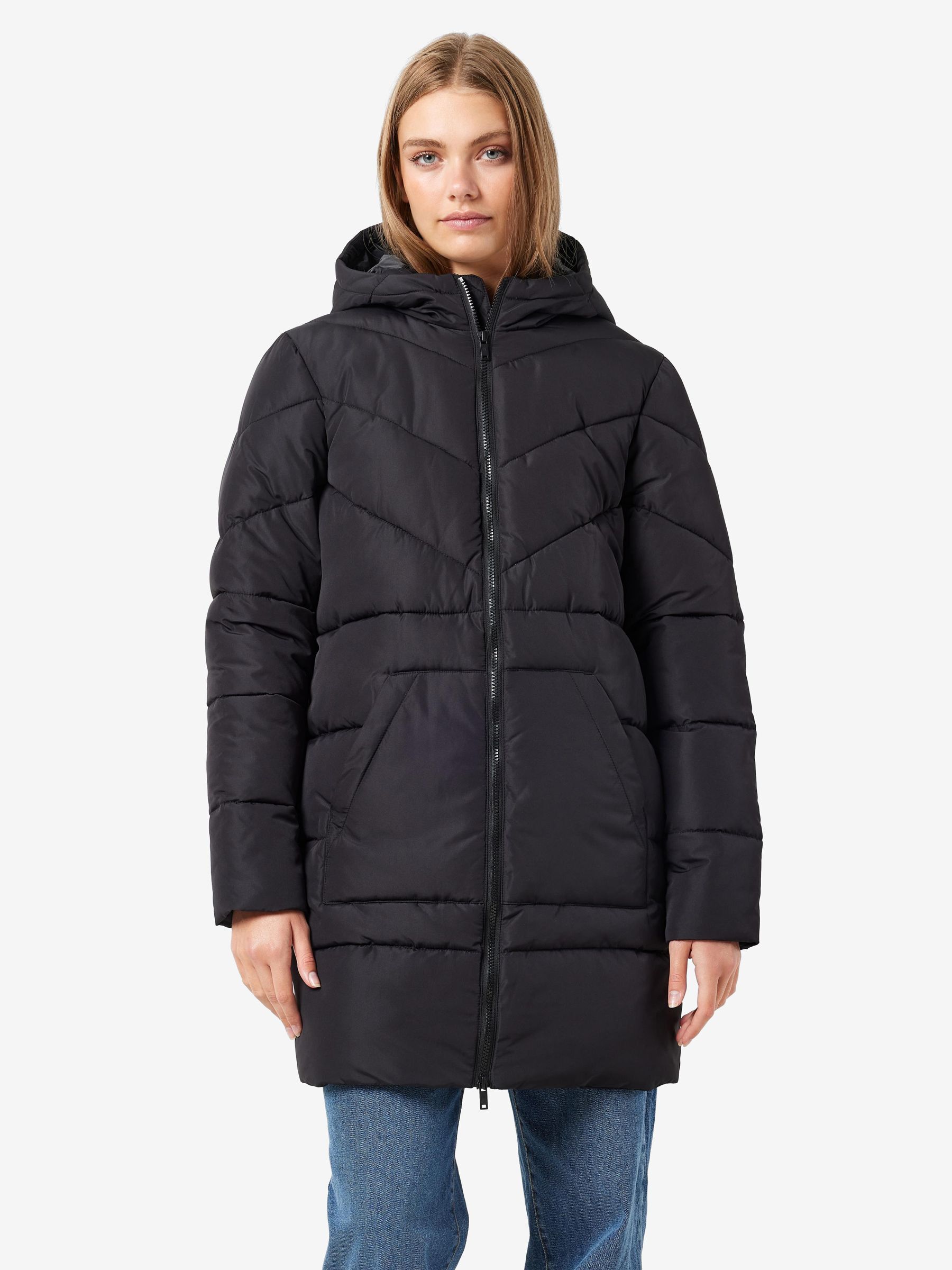 – Fixed hood- 2-way zip-up front- Long sleeves- Front patch pockets- Quilted design- Long length- Regular fit