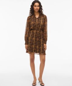 • Patterned short dress• Long sleeves• Split neck with tie strings• Elastic cutline at waist• Lined body with semi-sheer overlay• Regular fit• Length: 90 cm in size 38• Sleeve length: 62 cm in size 38