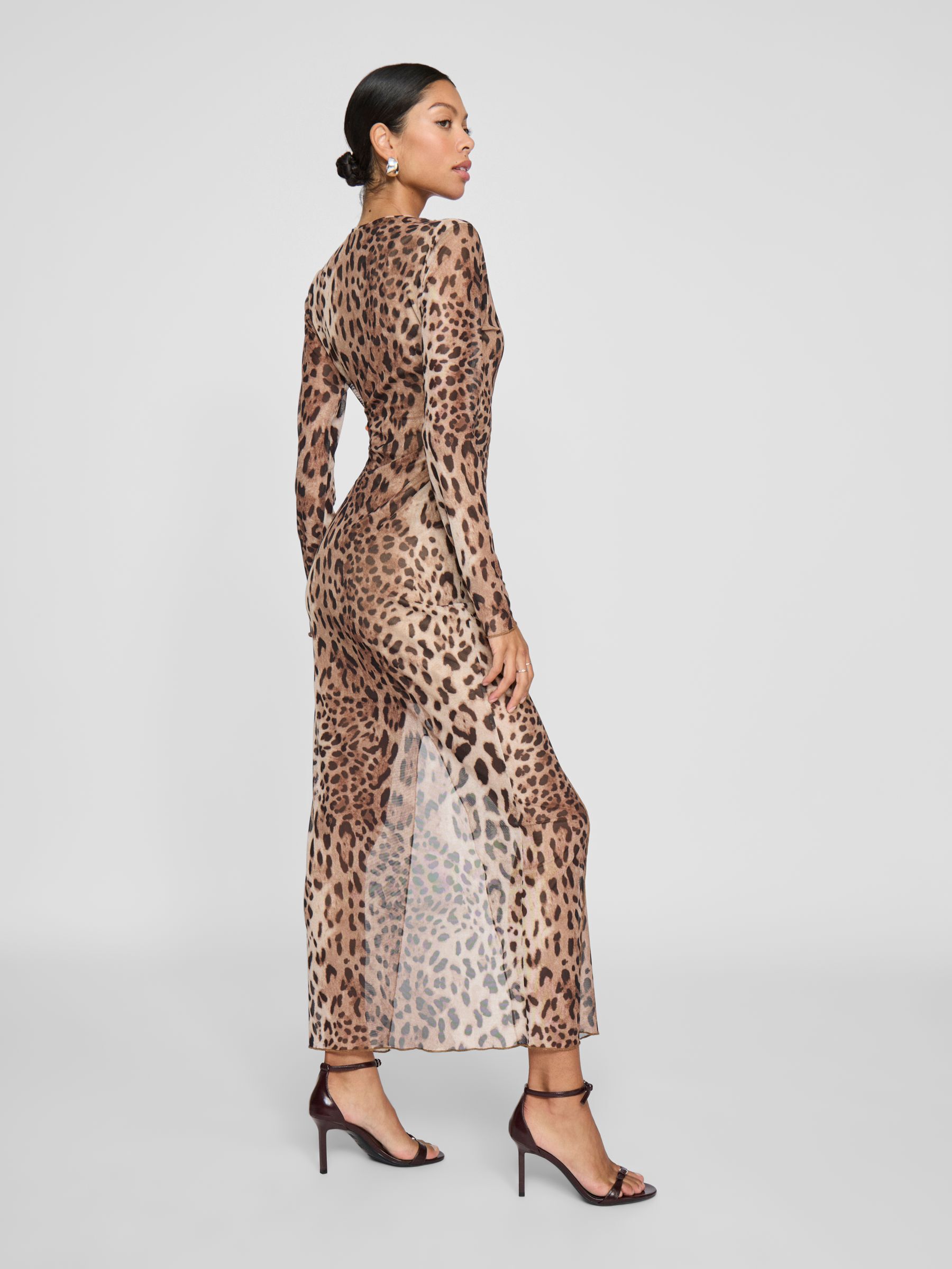 • Leopard print mesh dress• Midi-length• Long sleeves• Round neck• Slit detail• Lined body with sheer overlay• Regular fit• Length: 145 cm in size 38• Sleeve length: 68 cm in size 38