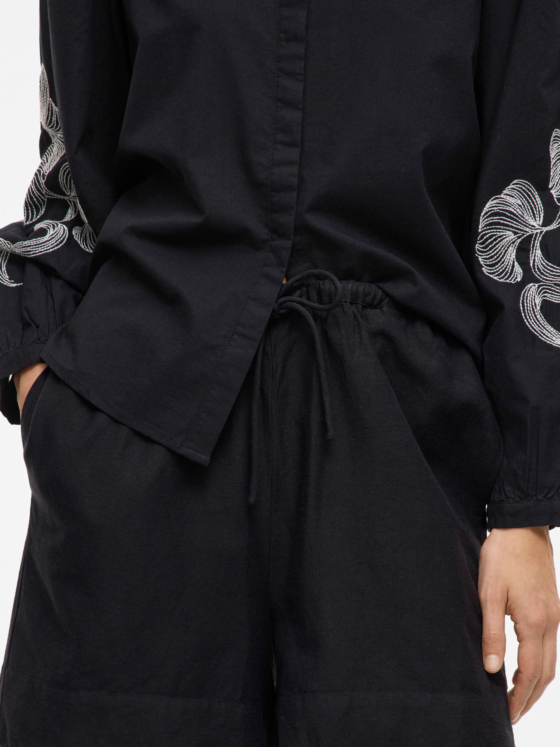 • Mid-waist shorts• Elastic waistband with drawstring• Side pockets• Includes linen• Regular fit• Inseam: 12 cm in size 38• Frontrise: 31 cm in size 38