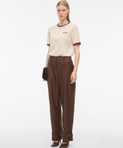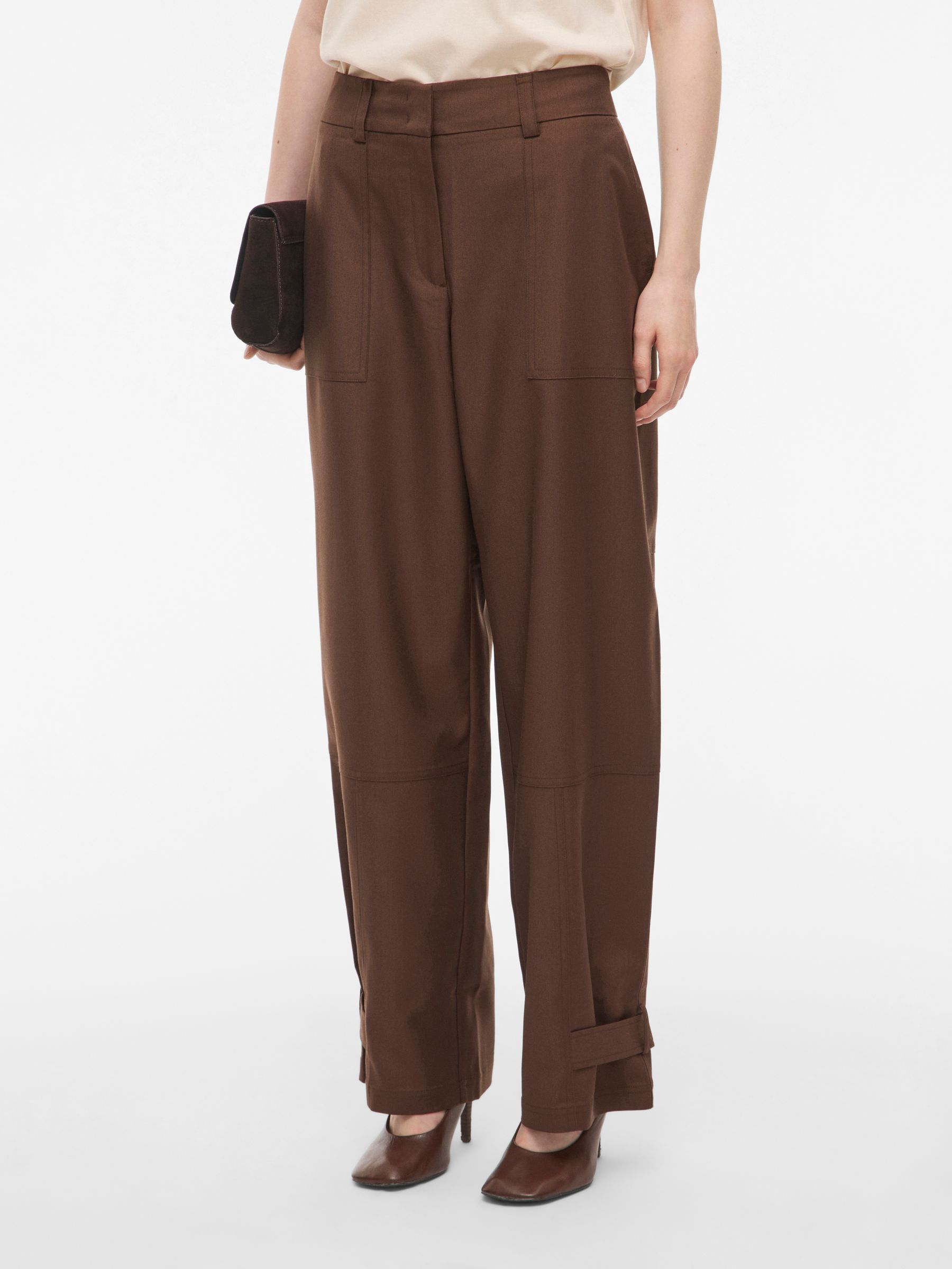 • Mid-waist trousers• Zip, button and clasp fastening• Side pockets• Decorative back pockets• Belt loops• Loose fit• Inseam: 81 cm in size 38• Frontrise: 28 cm in size 38