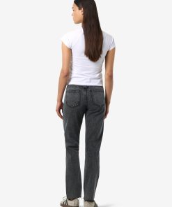 – Mid waist slim fit straight leg jeans- Belt loops- 5-pocket design- Faded detail- Zip fly with rivet button fastening- Slim fit
