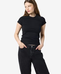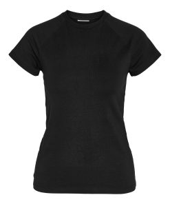 – Basic t-shirt- Round neck- Short raglan sleeves- Tight fit- Model is wearing size M