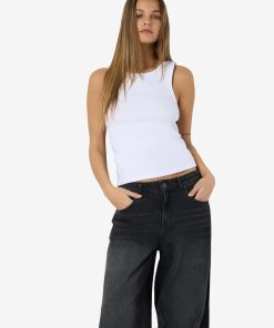 – U-neck tank top – Sleeveless – Slim fit- Ribbed- Stretchy- Model is 178cm tall and wearing size M