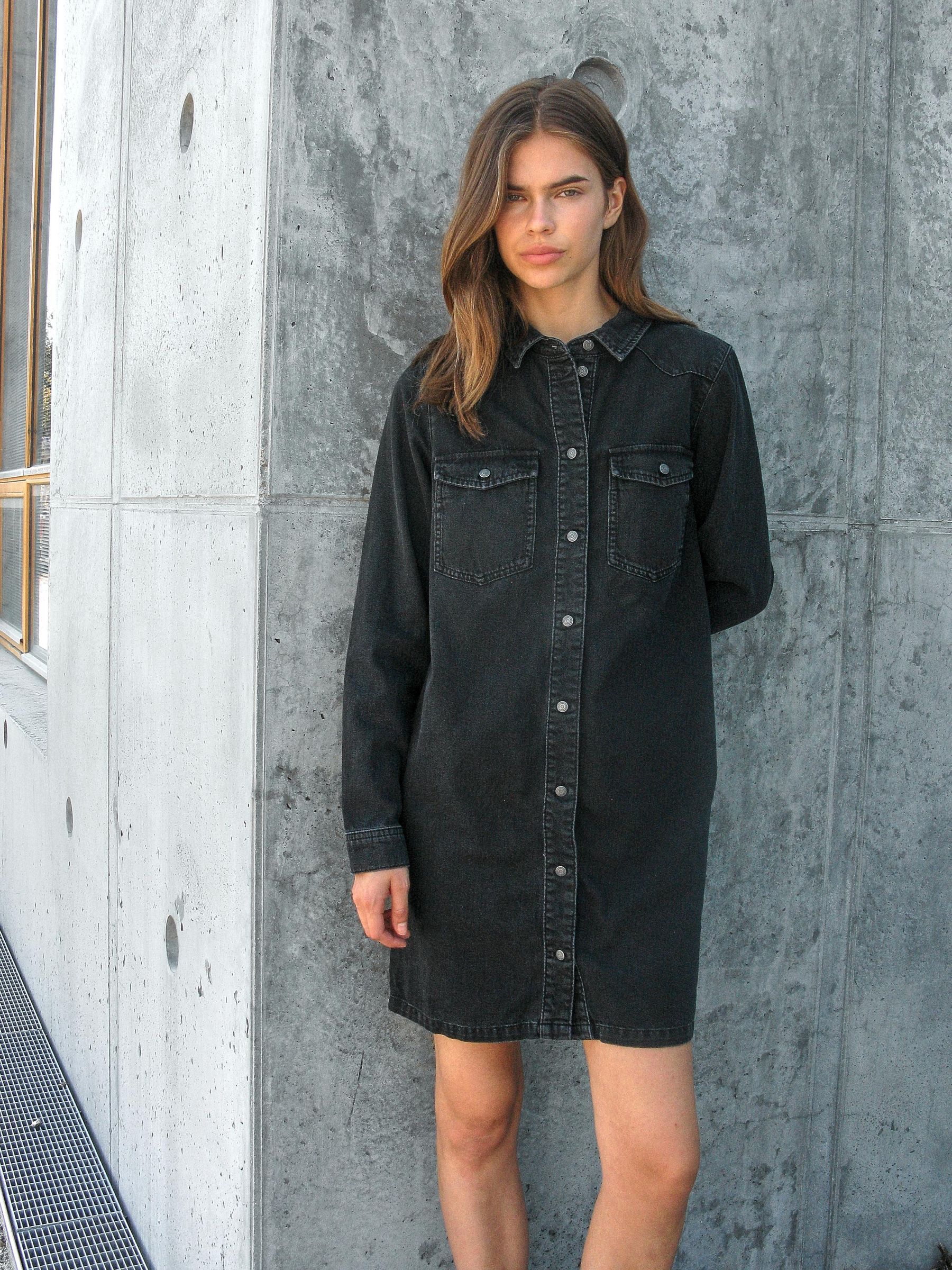 VILA Women’s Nmnew Denim Dress | Black Denim