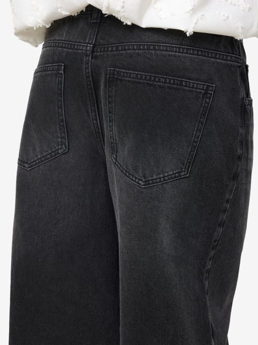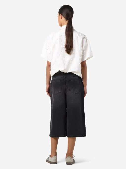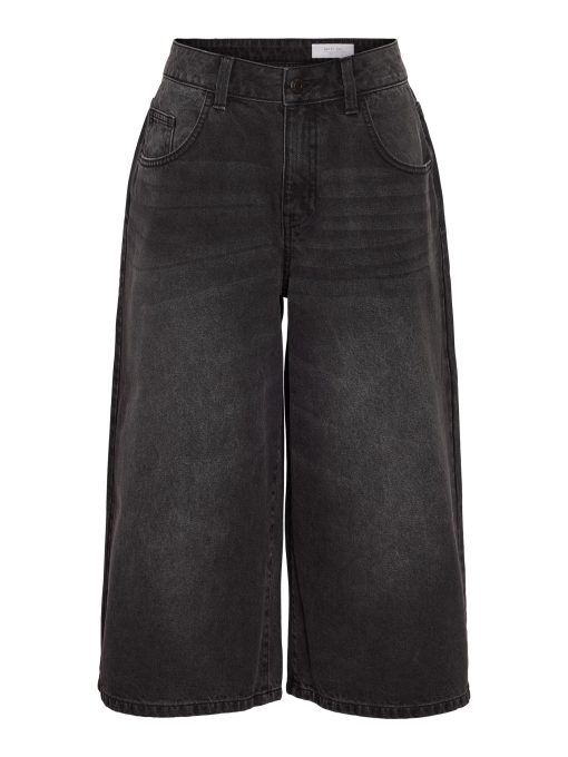 – Long denim shorts- Normal waist with belt loops- 5-pocket design- Jacron patch- Zip fly with rivet button fastening- Faded effect- Loose fit