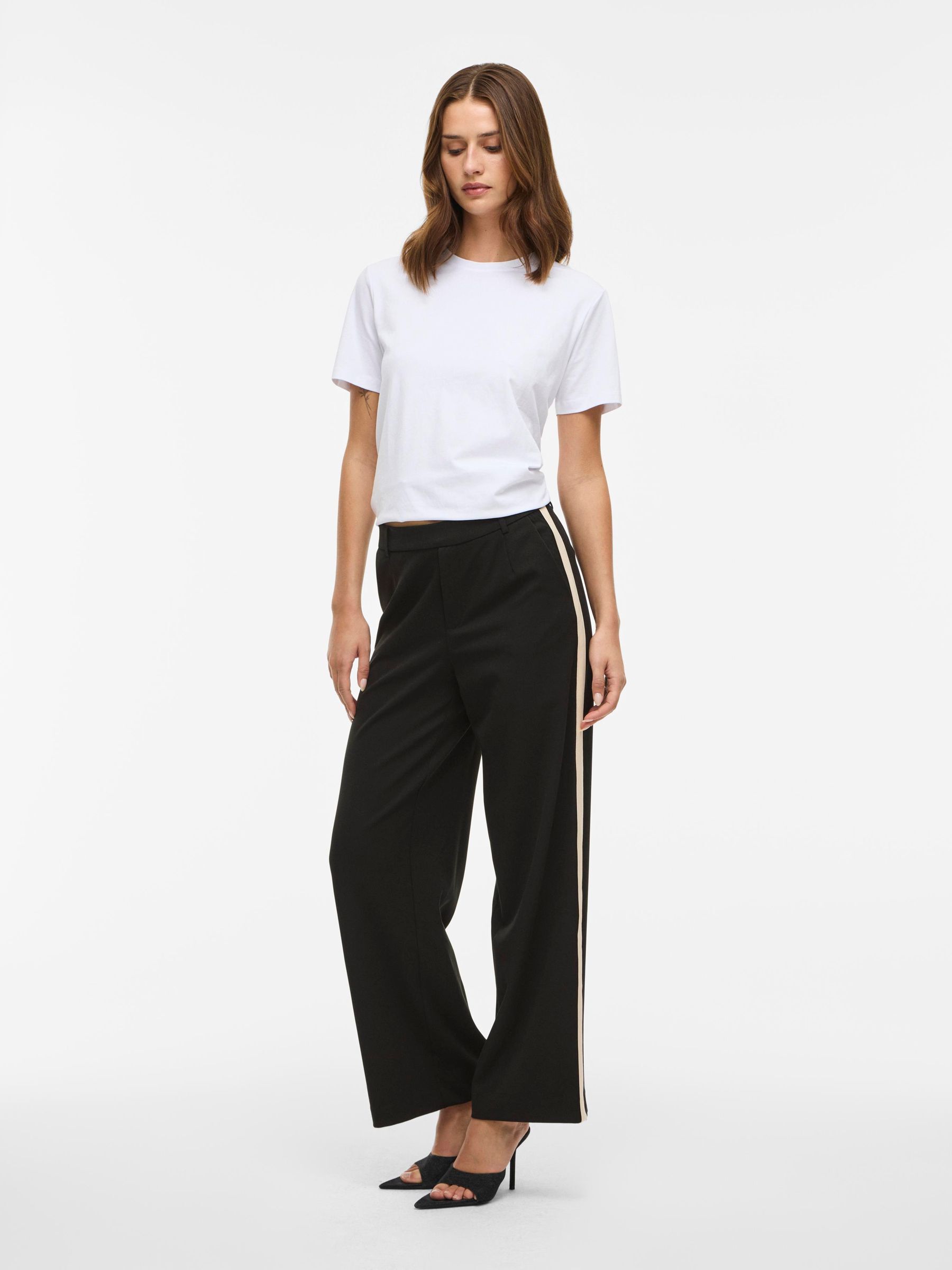 – High waist pants- Wide fit- Stretch-back waistband- Side pockets- Decorative back pockets- Belt loops- Faux fly- Inseam: 80 cm in size 38- Frontrise: 29 cm in size 38- Our model is 178 cm tall and wears size 38