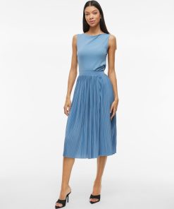 VILA Women’s Pleated Midi Skirt | Coronet Blue