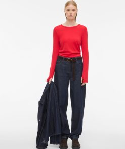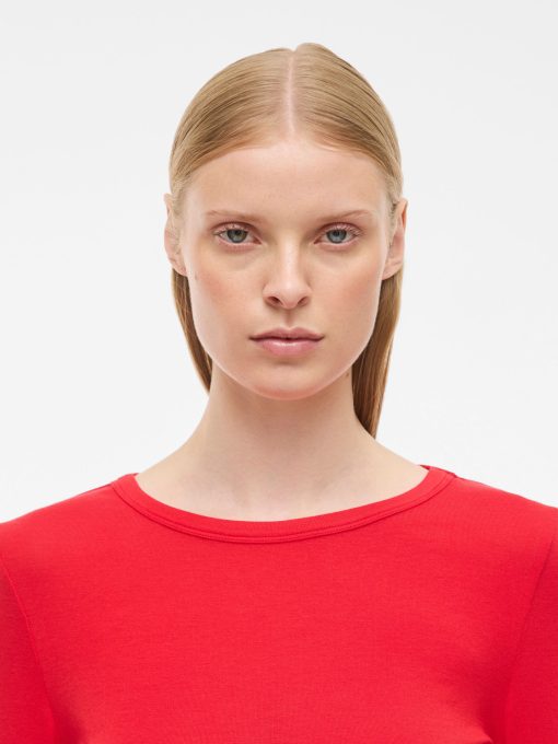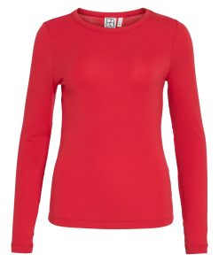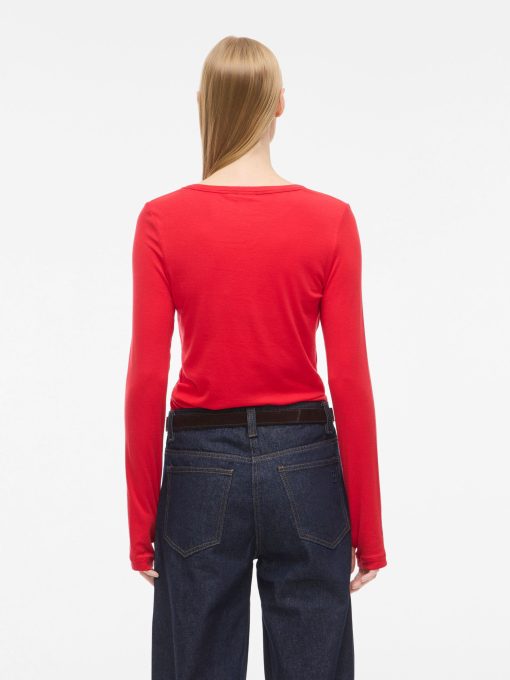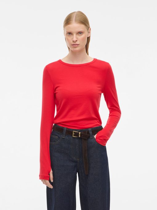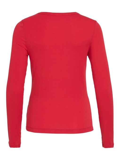 VILA Women’s Round Neck Long Sleeved Top | Chinese Red