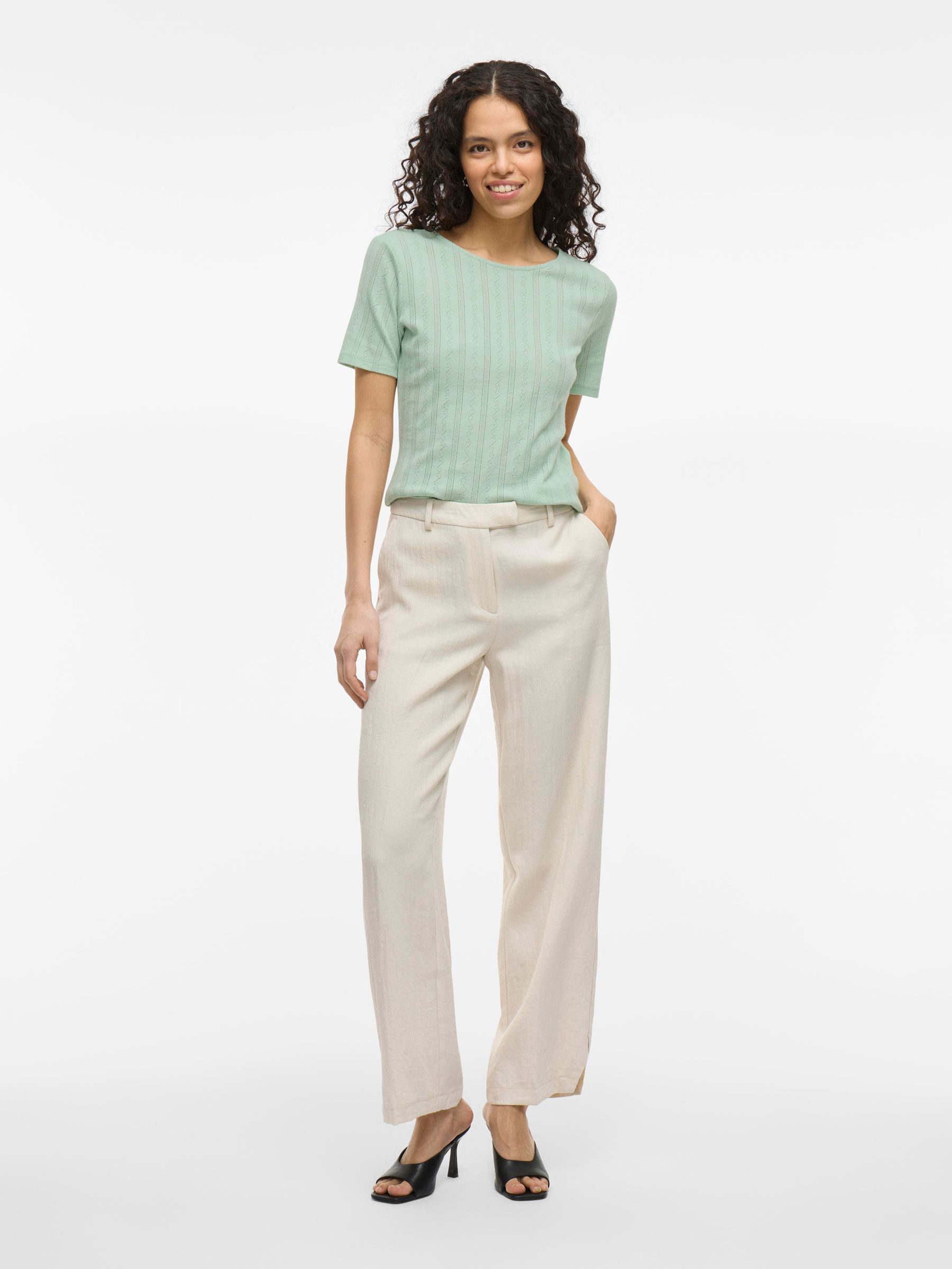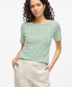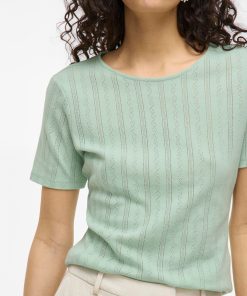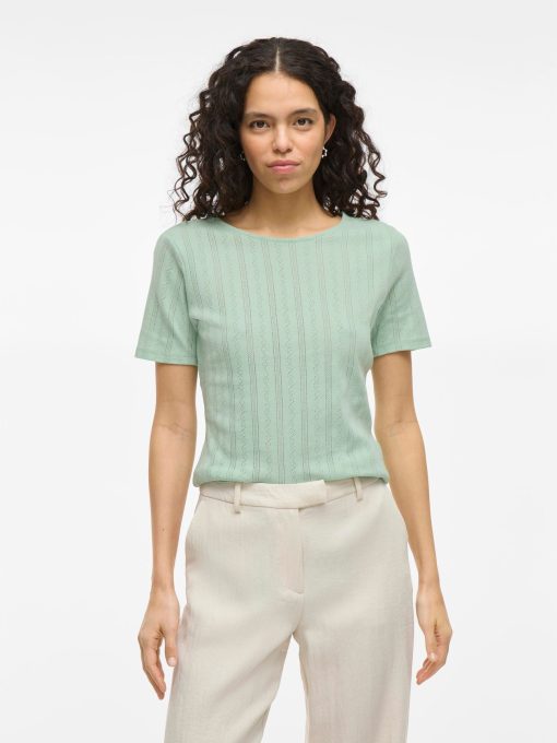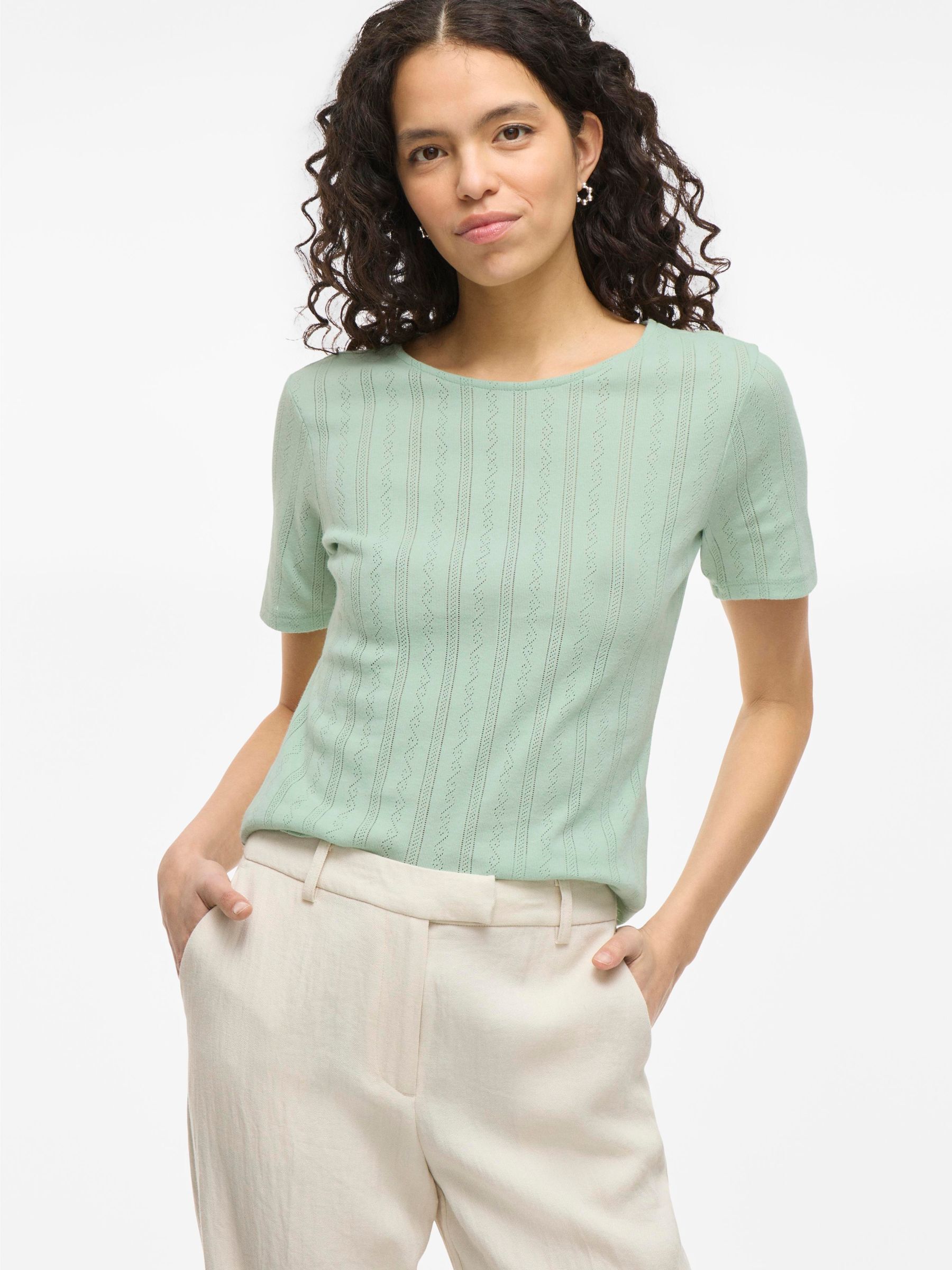 • Short sleeved pointelle top• Round neck• Regular fit• Length: 60 cm in size M• Sleeve length: 22 cm in size M