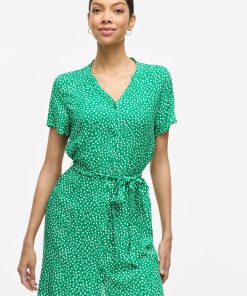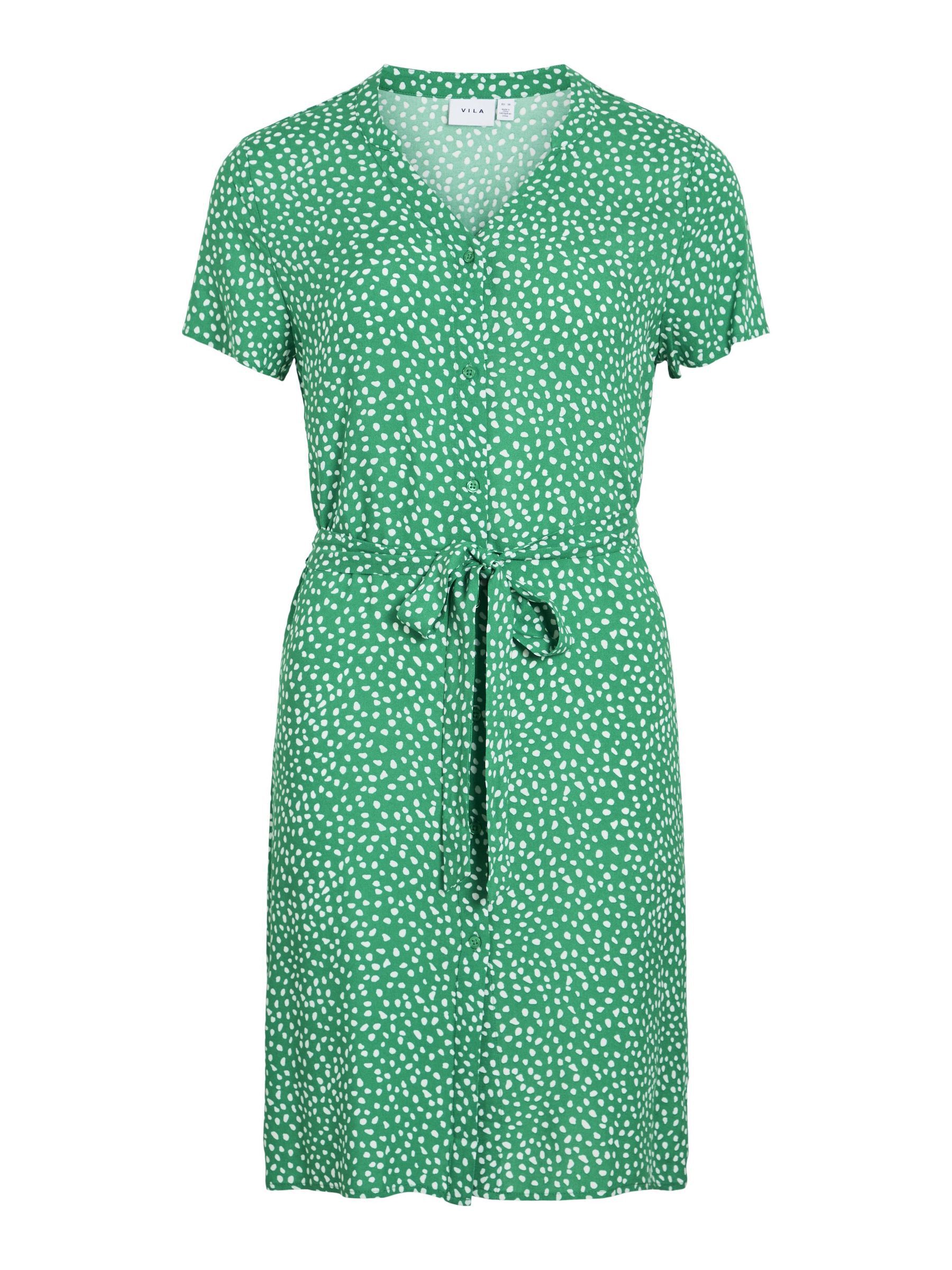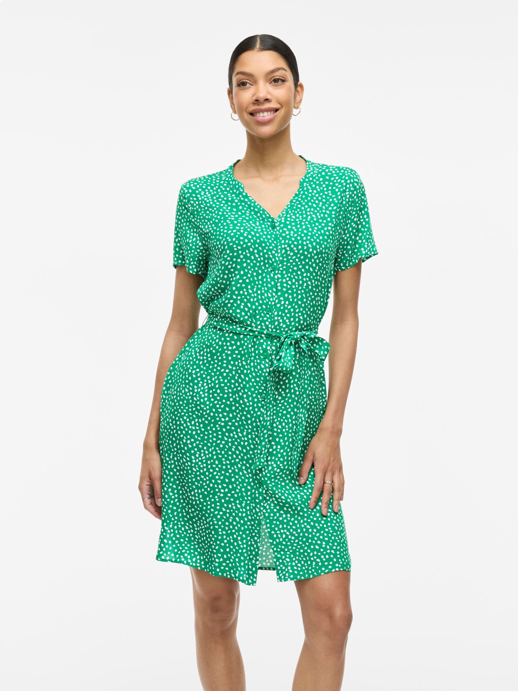 • Short sleeved shirt dress• Short-length• Button up front• V-neck• Tie waist with removable belt• Light fabric• Regular fit• Length: 98 cm in size 38• Sleeve length: 18 cm in size 38