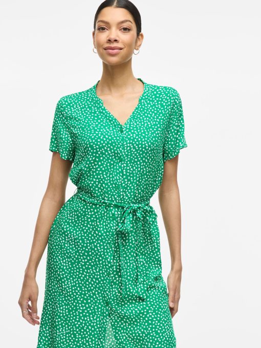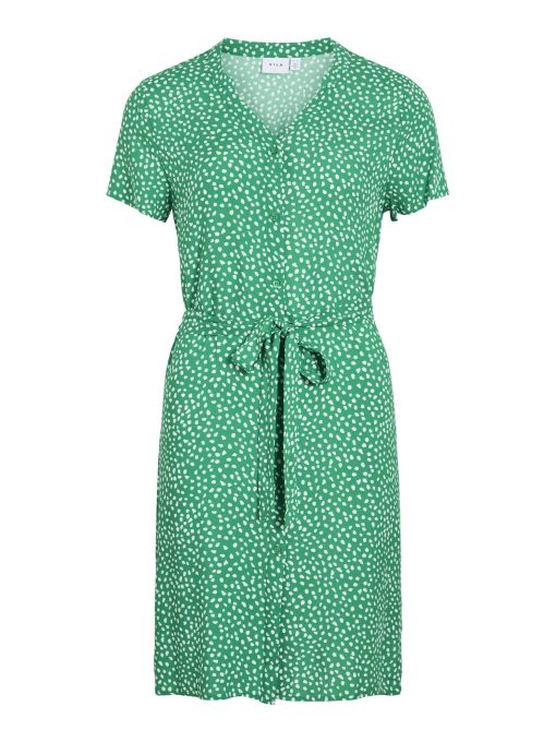 • Short sleeved shirt dress• Short-length• Button up front• V-neck• Tie waist with removable belt• Light fabric• Regular fit• Length: 98 cm in size 38• Sleeve length: 18 cm in size 38