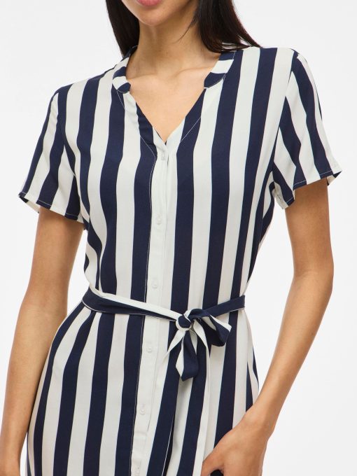 • Short sleeved shirt dress• Short-length• Button up front• V-neck• Tie waist with removable belt• Light fabric• Regular fit• Length: 98 cm in size 38• Sleeve length: 18 cm in size 38