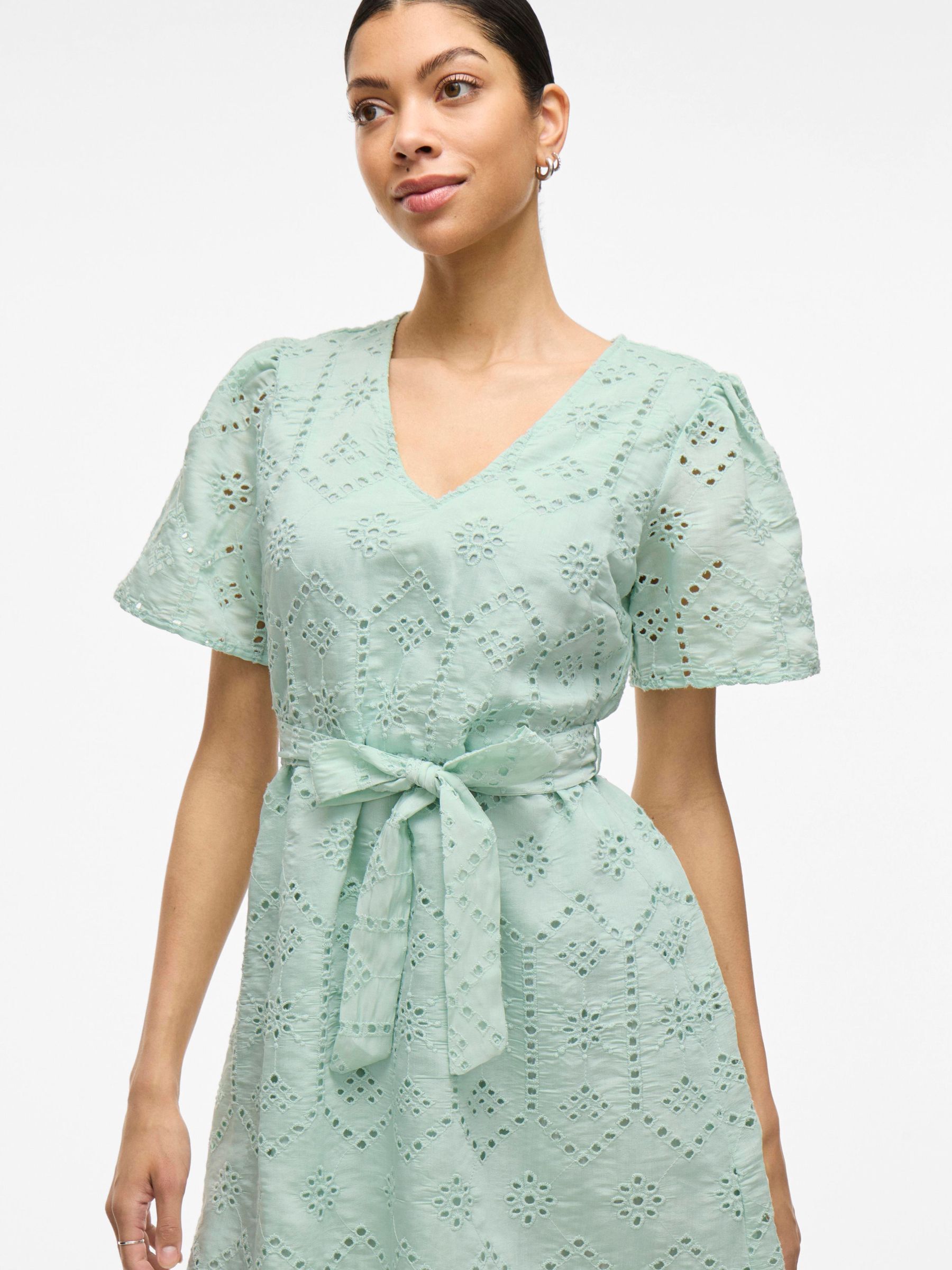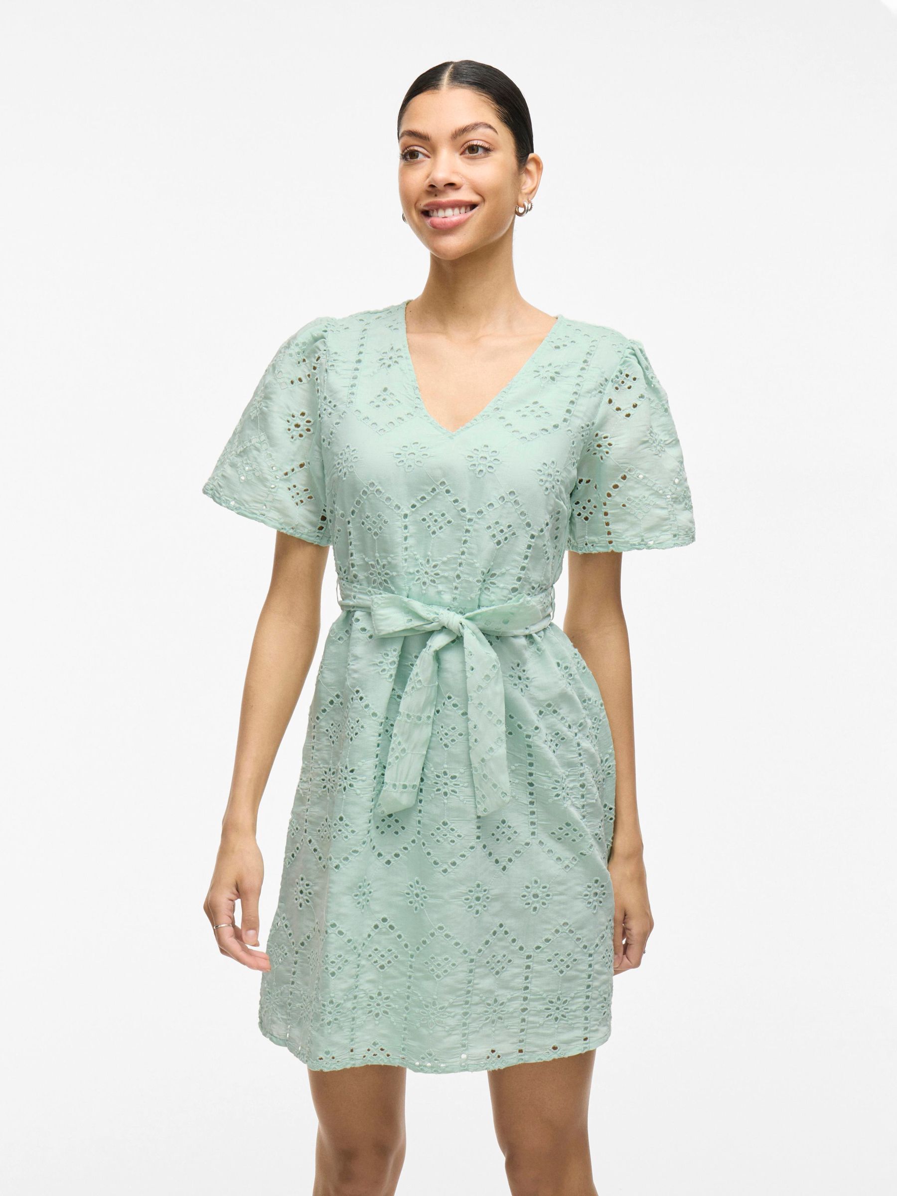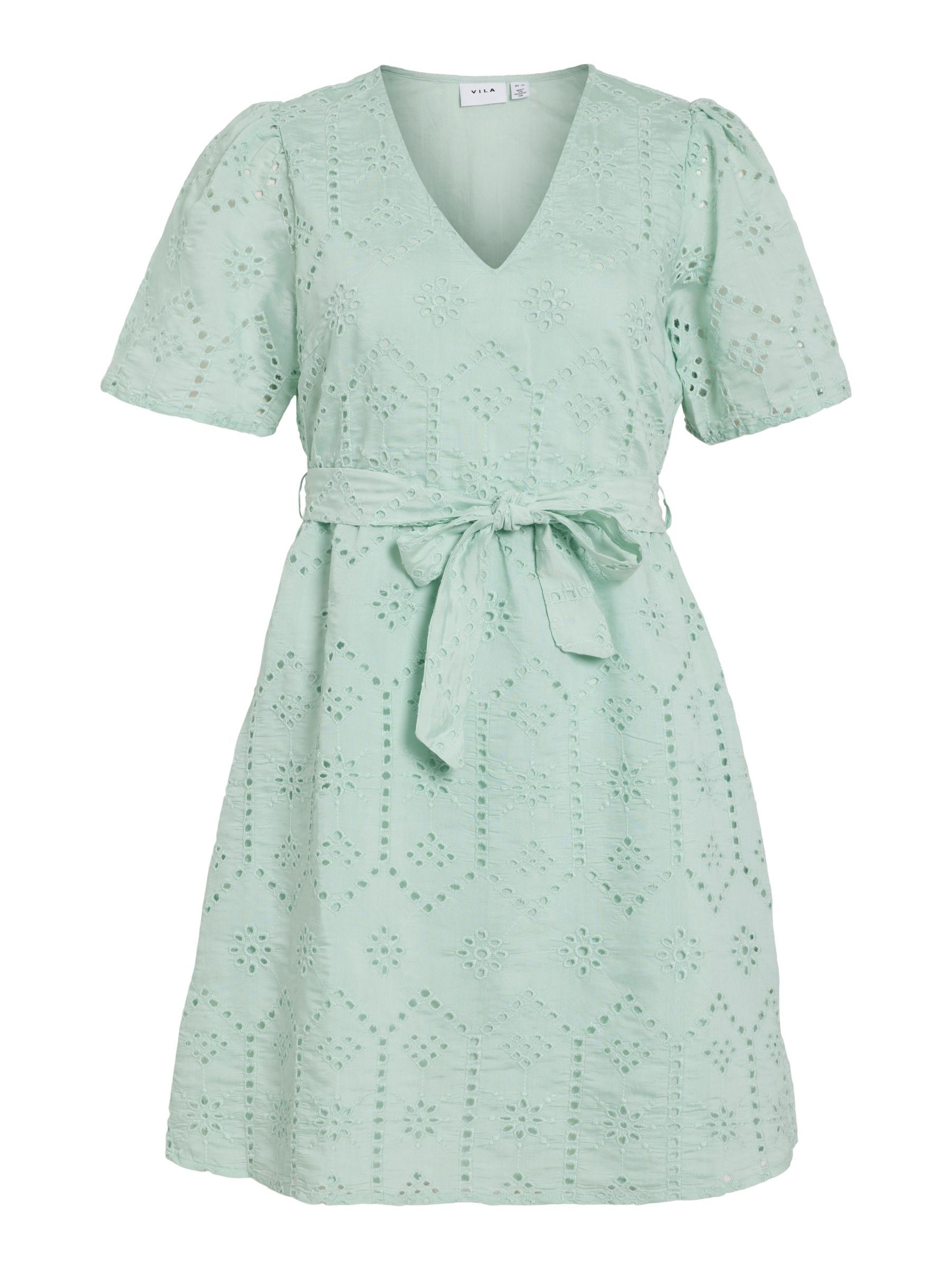 • Belted short dress• Short sleeves• V-neck• Elastic cutline at waist• Fully lined• Regular fit• Length: 95 cm in size 38• Sleeve length: 25 cm in size 38