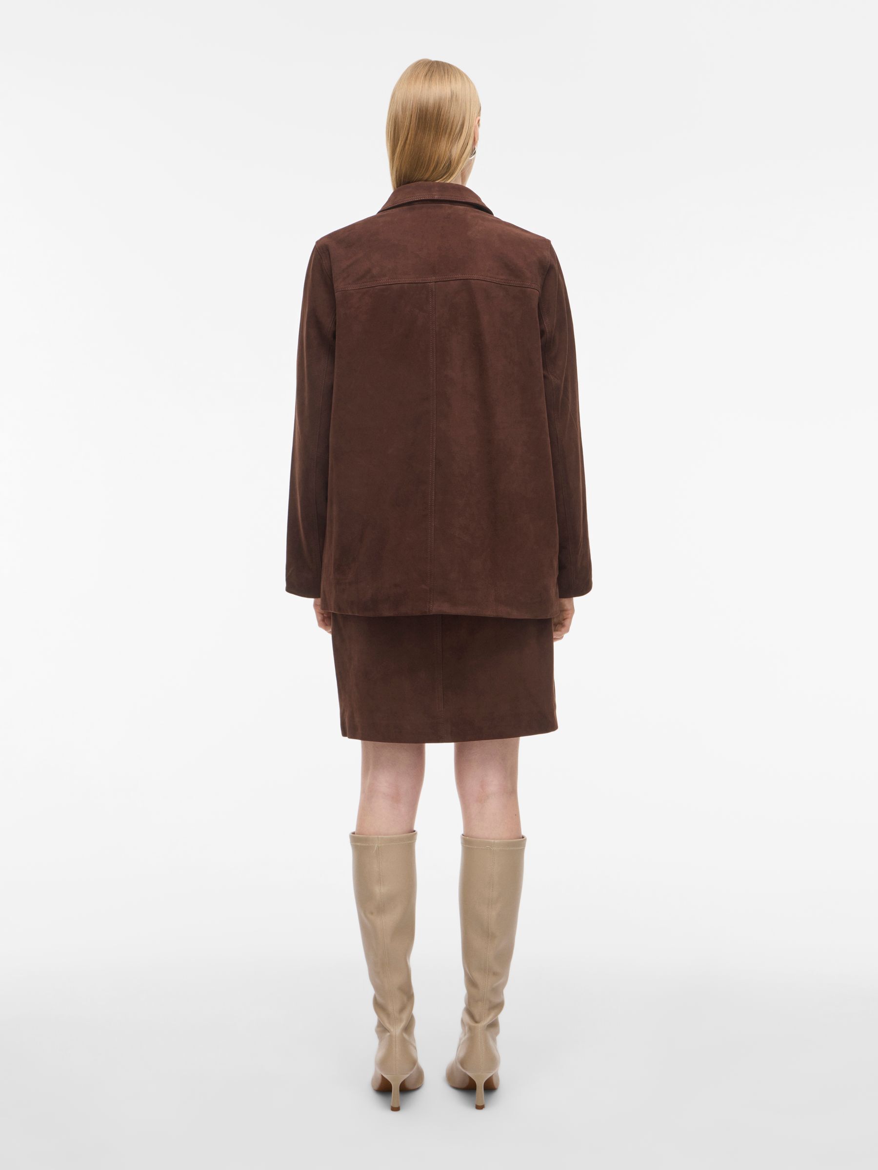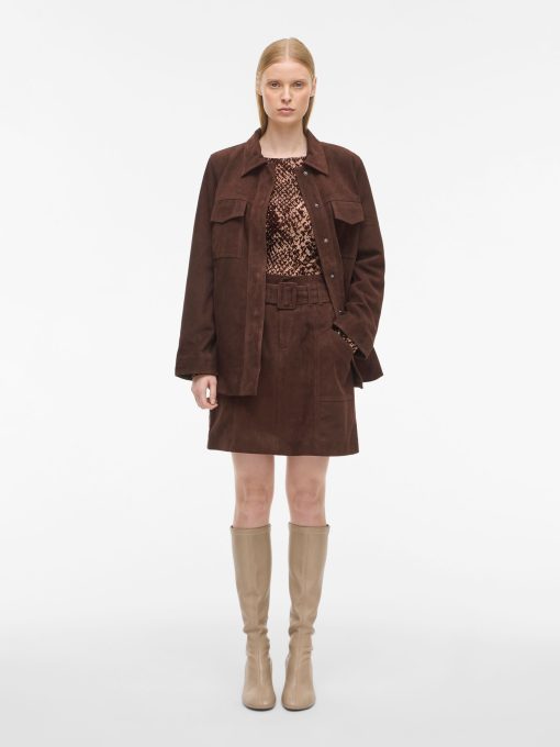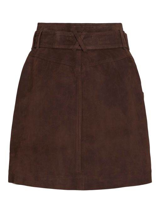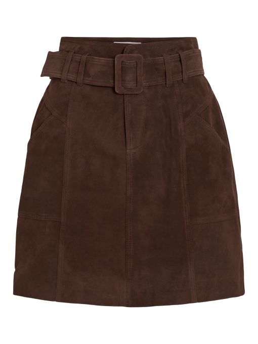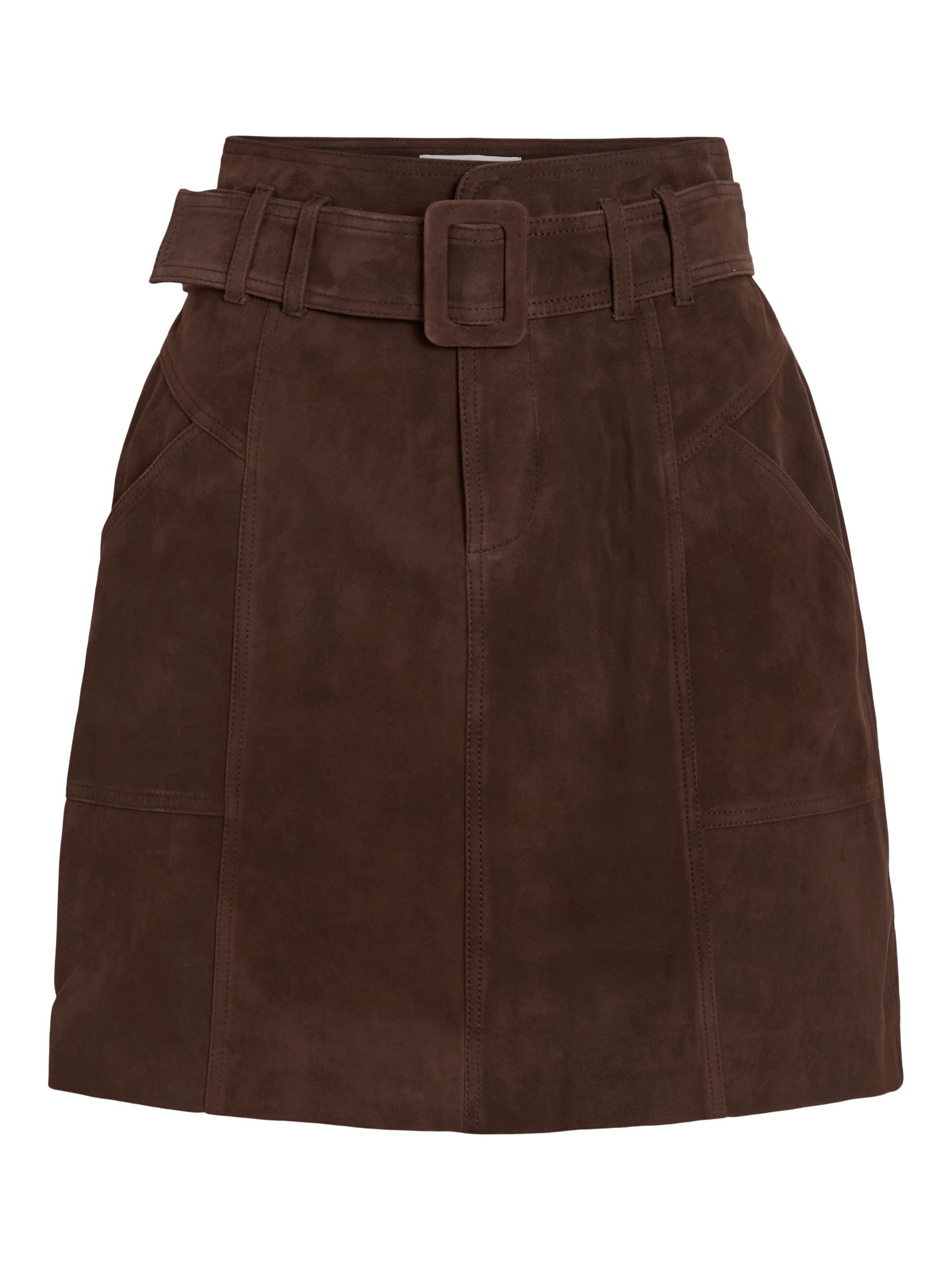• Mini suede skirt• High waist• Zip and button fastening• Belt loops• Removable belt• Front pockets• Regular fit• Length: 98 cm in size 38