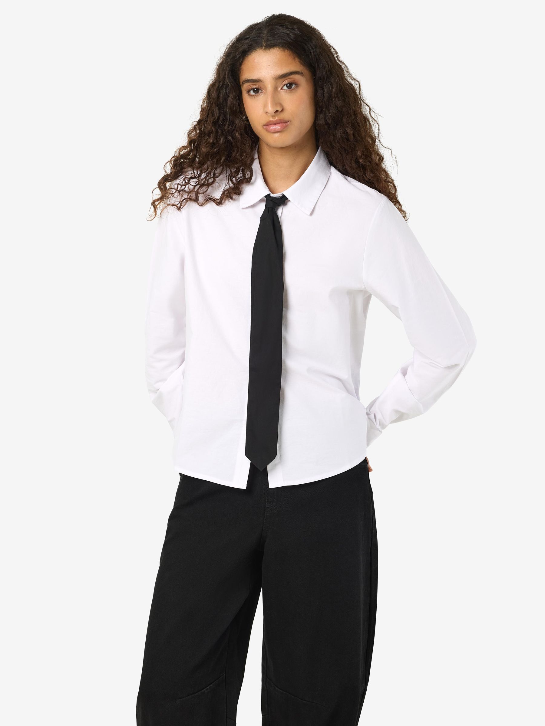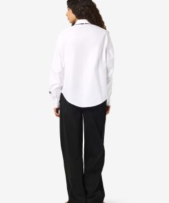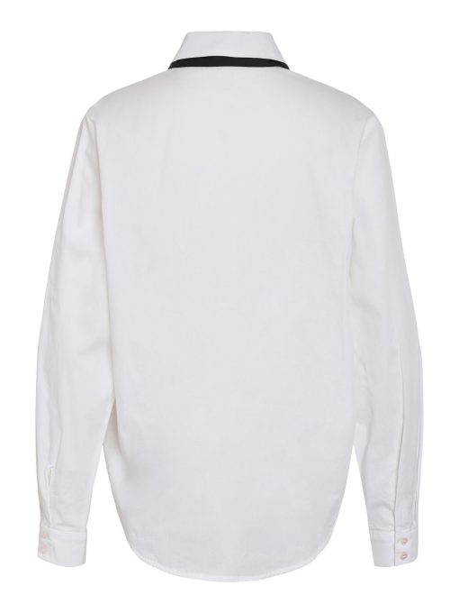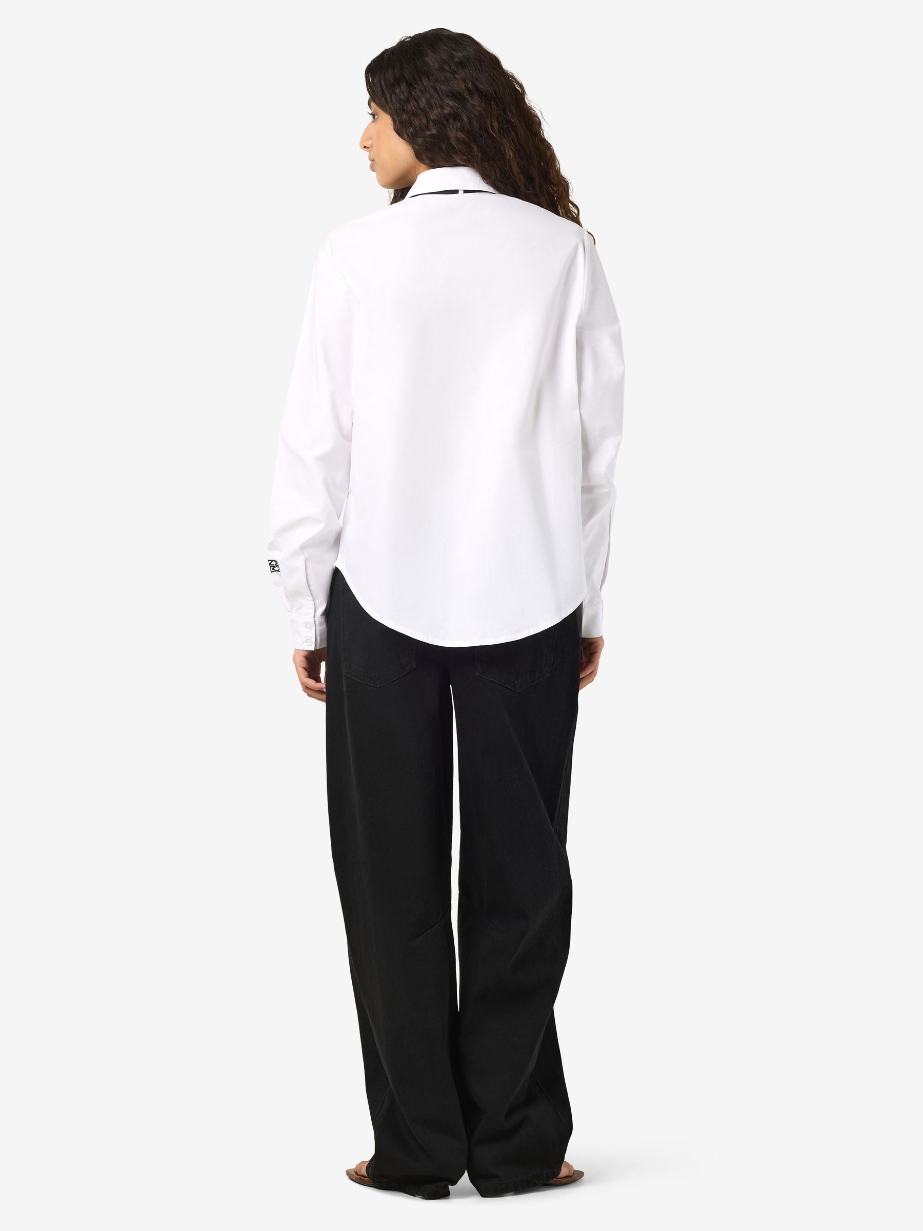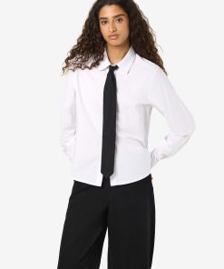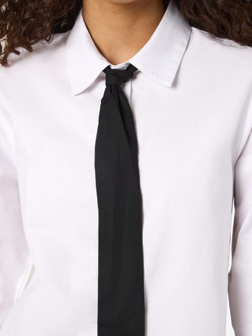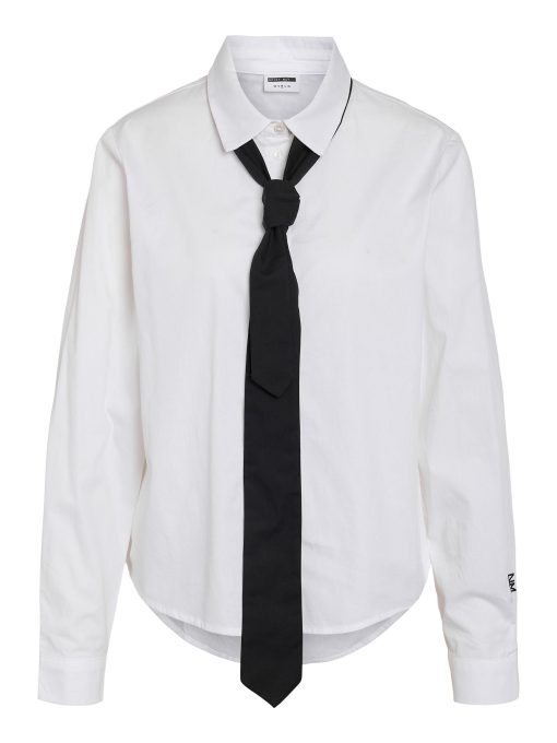 – Shirt with added neck tie detail- Regular collar- Dropped shoulders- Long sleeves with small NM logo embroidery detail- Buttoned cuffs- Button-up front- Relaxed fit