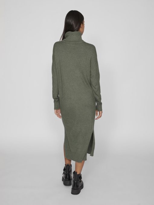 – Long-sleeved knit midi dress- Turtleneck- Dropped shoulders- Side slit details- Rib edges- Length: 115 cm in size M- Sleeve length: 73 cm in size M- Our model is 178 cm tall and wears size M