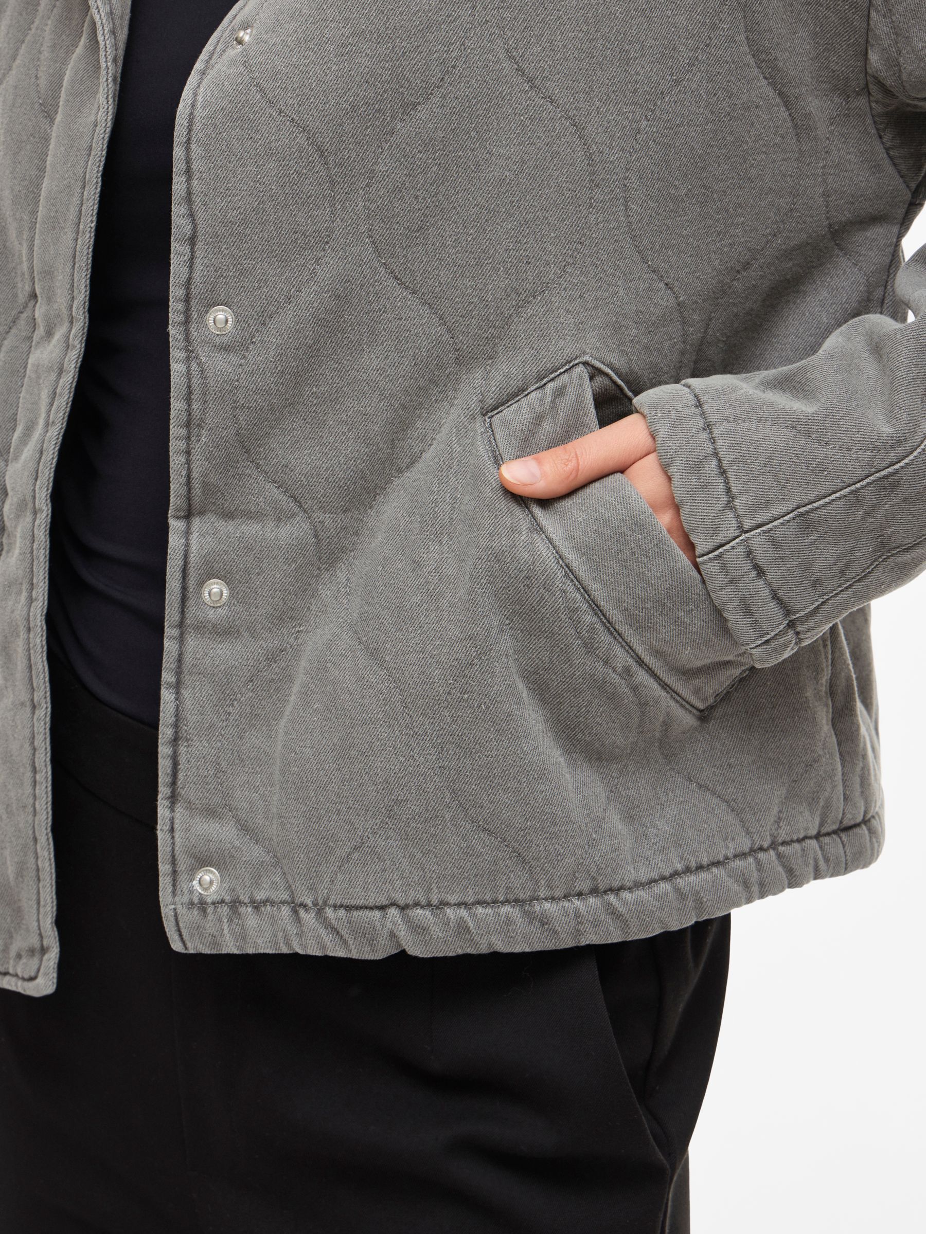 • Quilted denim jacket• Hidden front button fastening• High neck• Dropped shoulders• Front pockets• Regular fit• Length: 58 cm in size 38• Sleeve length: 62 cm in size 38