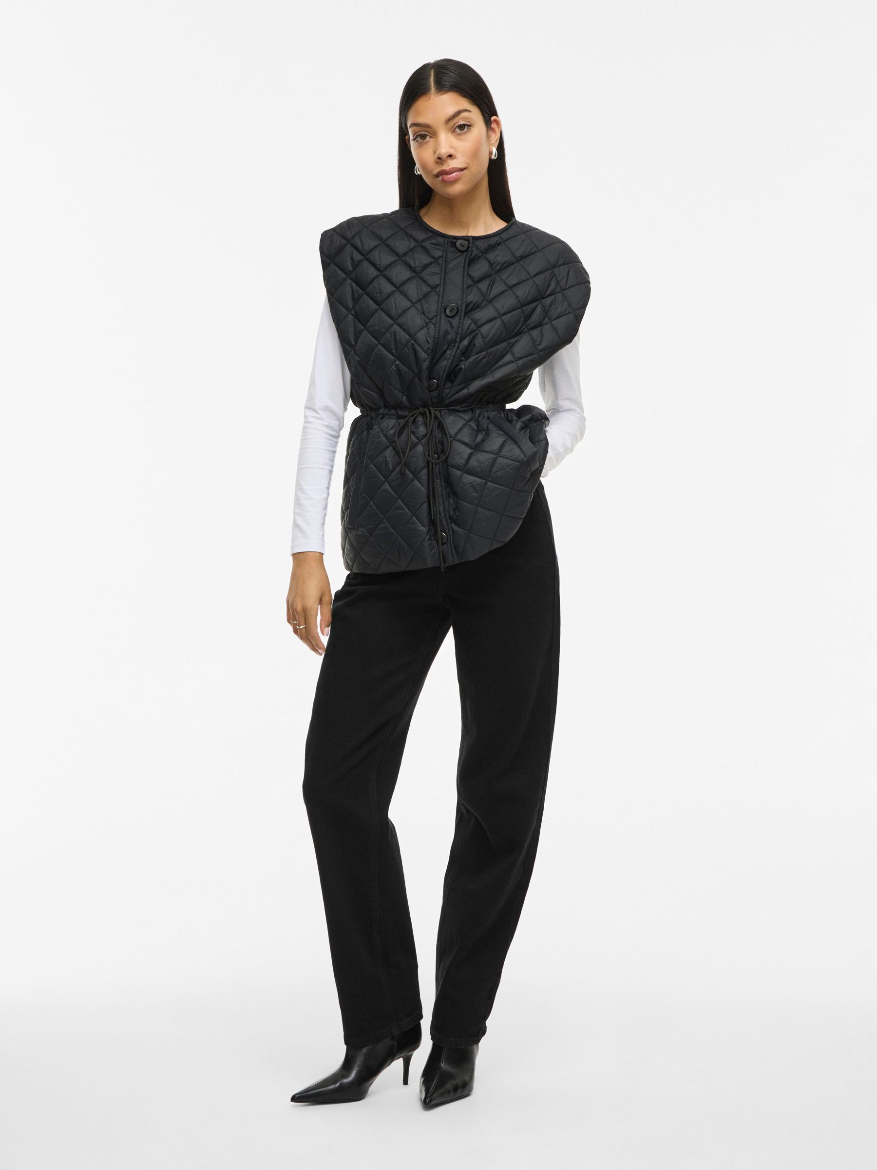 • Quilted waistcoat with drawstring waist• Front button fastening• Two pockets• Round neck• Light padding, perfect for in-between seasons• Regular fit• Length: 71 cm in size 38