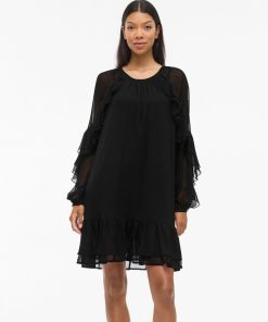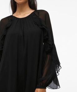 • Short dress with frill details• Long sleeves• Round neck with button-keyhole fastening• One-button cuffs• Lined body with semi-sheer overlay• Regular fit• Length: 94 cm in size 38• Sleeve length: 70 cm in size 38
