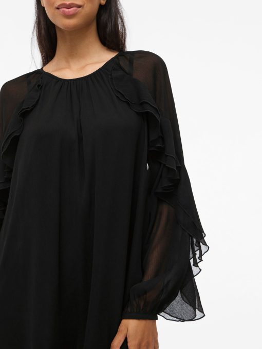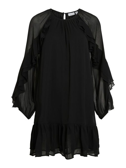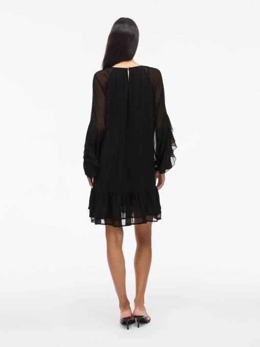 • Short dress with frill details• Long sleeves• Round neck with button-keyhole fastening• One-button cuffs• Lined body with semi-sheer overlay• Regular fit• Length: 94 cm in size 38• Sleeve length: 70 cm in size 38