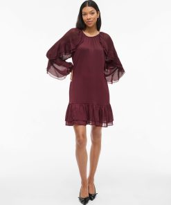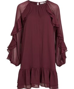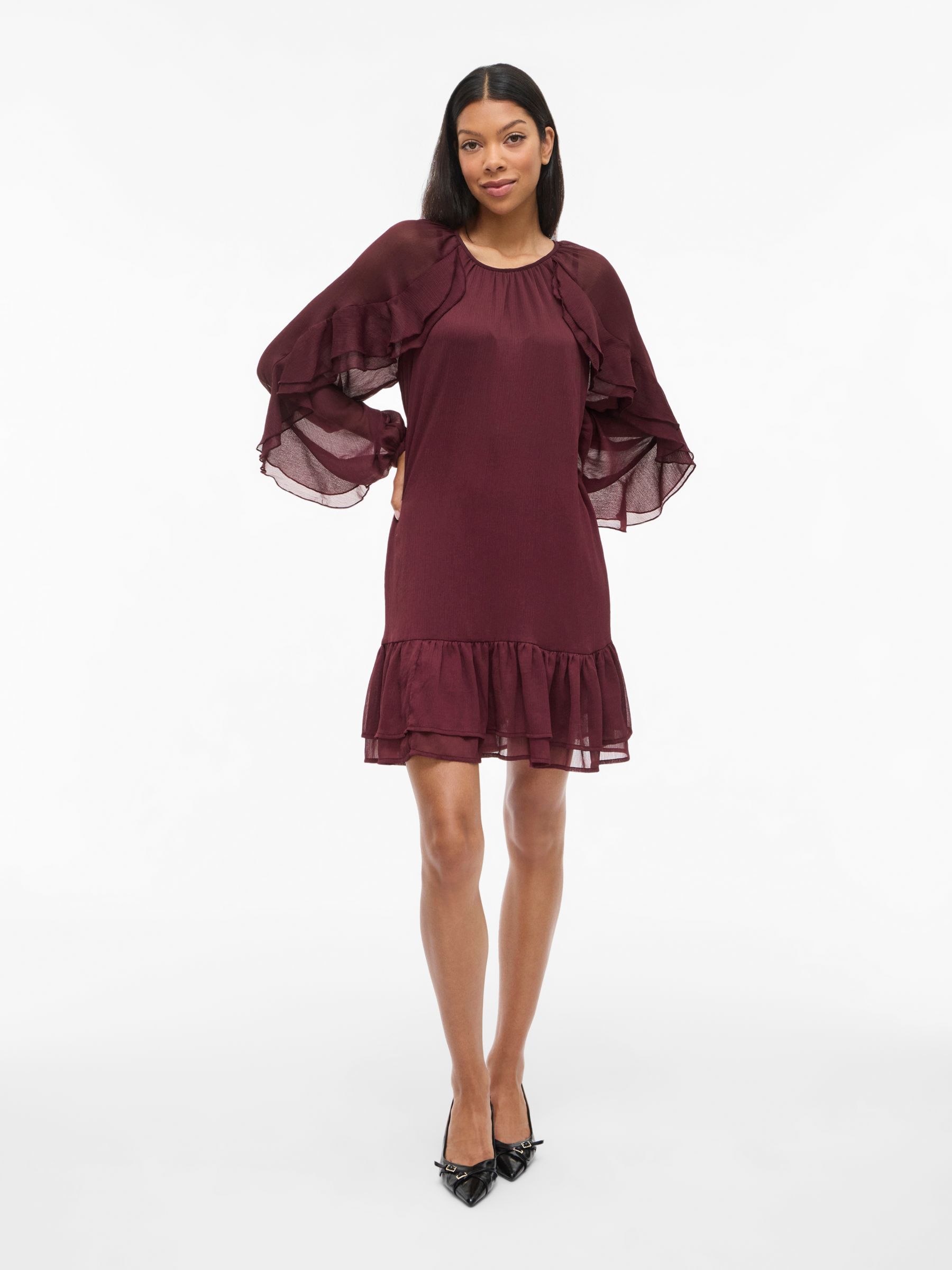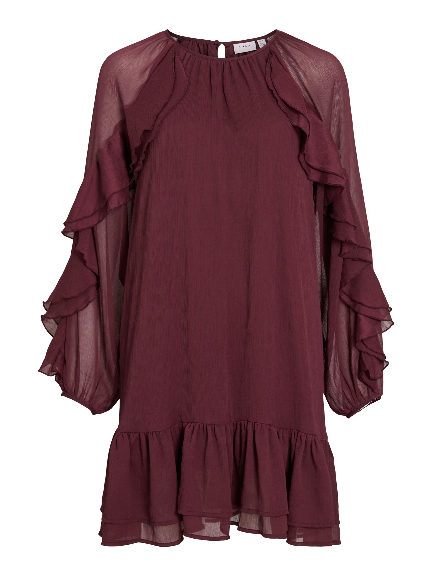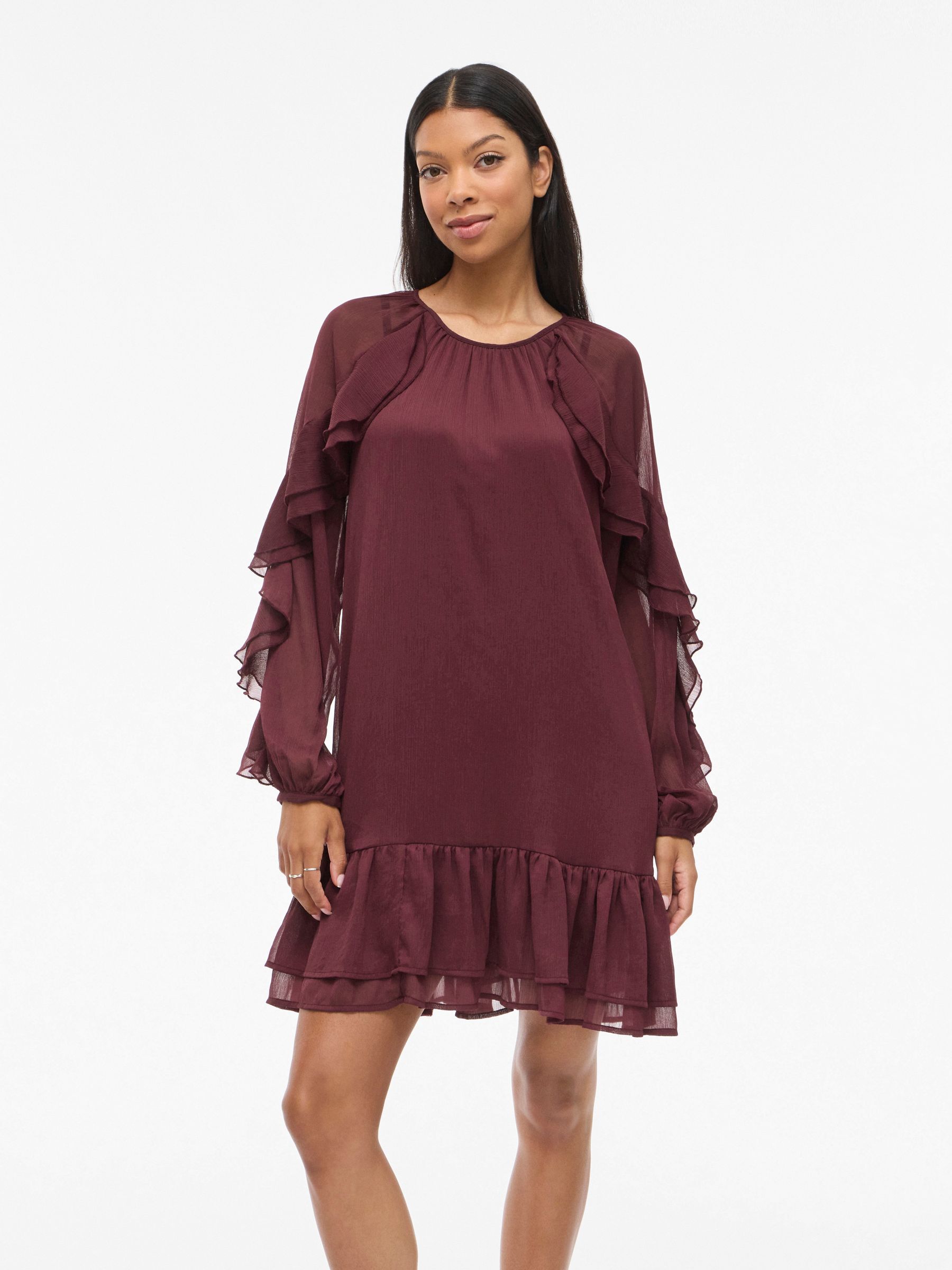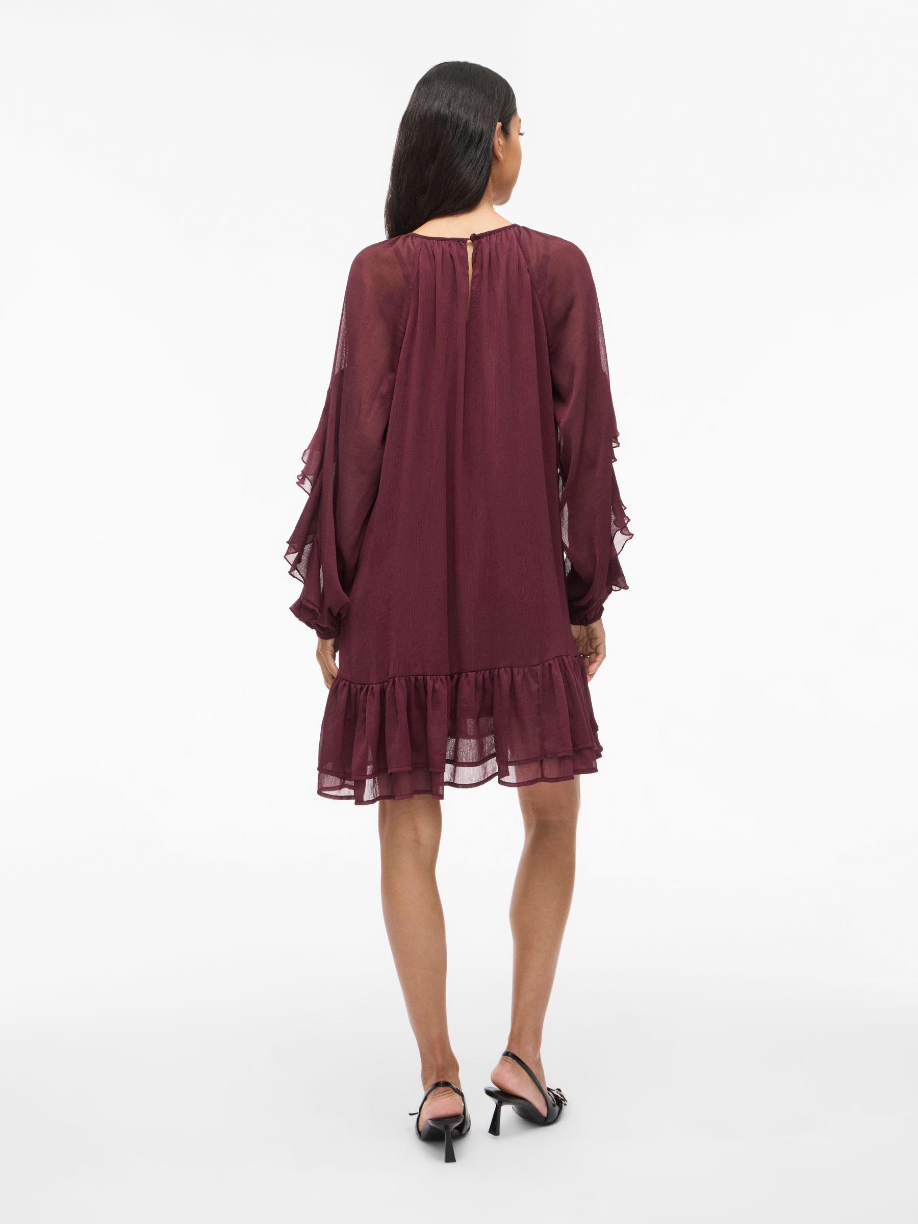 • Short dress with frill details• Long sleeves• Round neck with button-keyhole fastening• One-button cuffs• Lined body with semi-sheer overlay• Regular fit• Length: 94 cm in size 38• Sleeve length: 70 cm in size 38