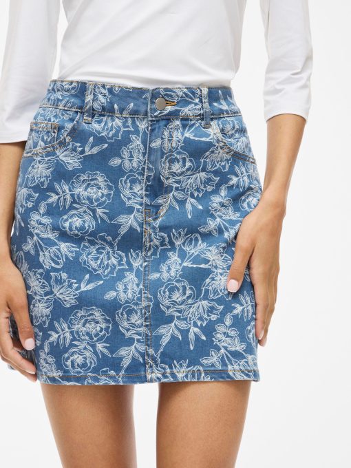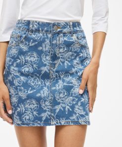• Mini denim skirt• High waist• Zip and button fastening• Front and back pockets• Belt loops• All-over print• Regular fit• Length: 40 cm in size 38