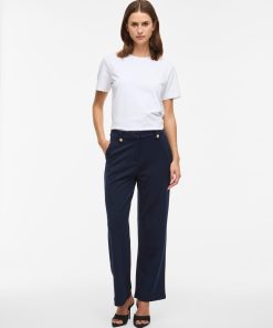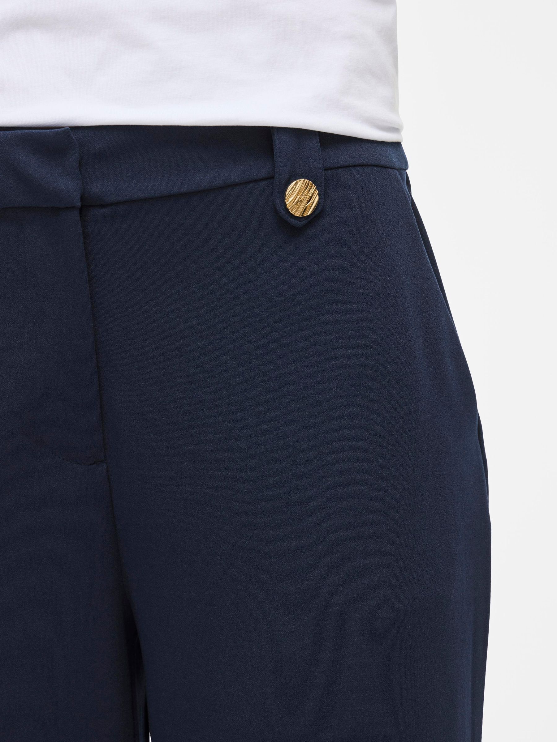 • High waisted trousers• Zip-up fly with hook and button fastening• Side pockets• Decorative back pockets• Stretch-back waist• Belt loops• Wide-leg fit• Inseam: 78 cm in size M• Frontrise: 30 cm in size M