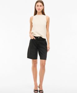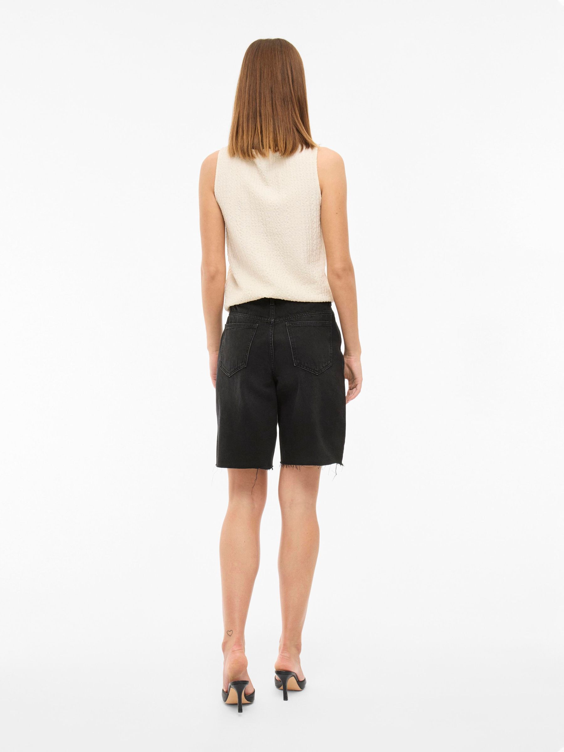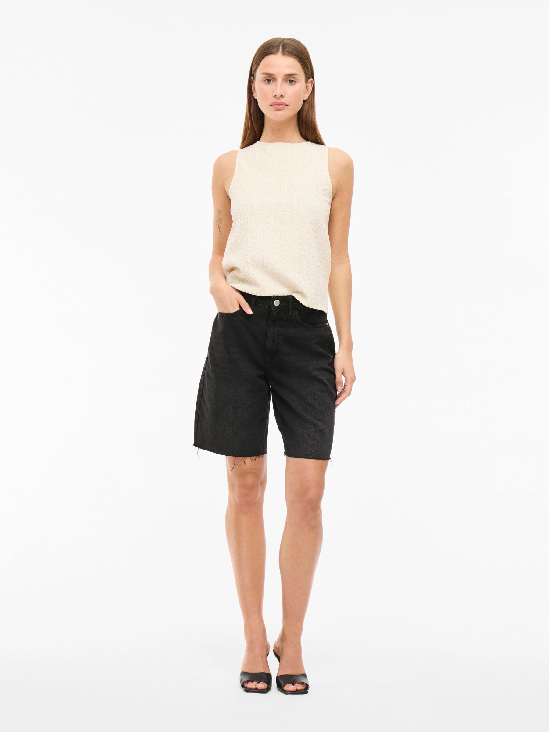 • Denim bermuda shorts• High waist• Zip and button fastening• Front and back pockets• Belt loops• Raw edge• Regular fit• Inseam: 26 cm in size 38• Frontrise: 30 cm in size 38